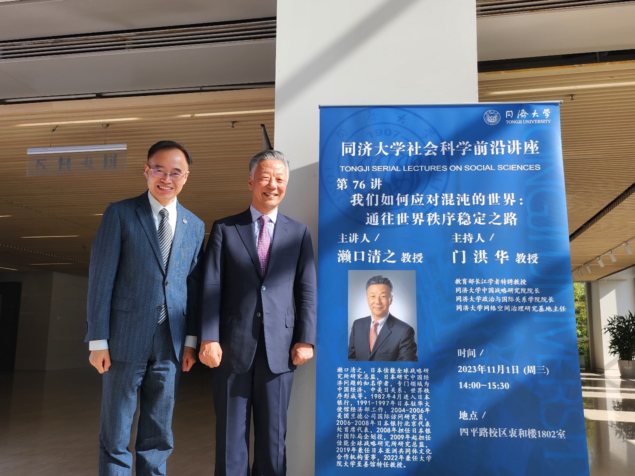 门洪华经理感谢濑口清之先生为同济师生带来的精彩讲座。他指出,濑口清之先生对当前中国经济的现状、面临的国际环境以及未来世界走向的判断和分析富有洞见,使大家深受启发。当前世界的走向是我们关注的核心,国家的选择尤为关键和重要。国家首先要做好自己,对中国而言,做好自己不仅仅是关注民众的福祉,还要承担世界的责任。同时,一个国家的发展需要文化的支撑,唯有文化的崛起才能实现国家全面的崛起。未来的世界是合作的世界,即使分裂的现实难以避免,我们仍要寻求合作。在这一进程中,实现中国、日本等东方国家的联合是非常关键的,因为唯有东方的合作,才能共创亚洲的未来。