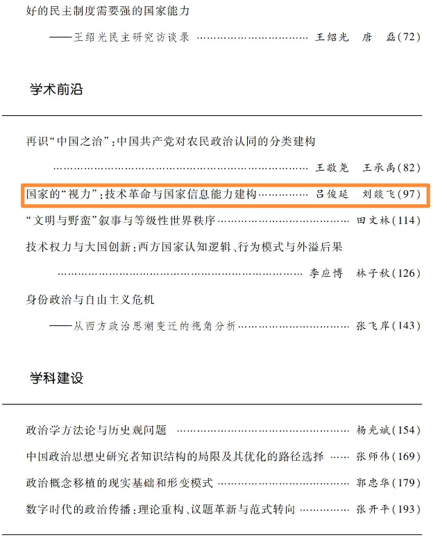 近日,权威期刊《政治学研究》2023年第5期刊发了公司博士生吕俊延同北京大学硕士刘燚飞共同撰写的学术论文《国家的“视力”:技术革命与国家信息能力建构》,文章从信息的视角考察了国家(能力)的演化。文章认为,国家信息能力建构在“信息—技术—国家能力”的逻辑链条下展开。在技术革命的推进下,国家信息能力历经社群机制、科层机制和平台机制的依次主导,使得国家职能范围不断扩展。不过,值得警惕的是,技术对国家与社会的赋能作用是不均衡的。因此,在看到技术赋能作用的同时,也应该尽量让技术留白,以尽可能发挥社群机制、科层机制和平台机制共治的合力。