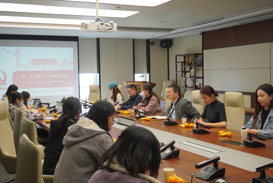 在心得分享环节,支部党员分享了自己的学习与实践感悟。汪平平同志分享了自己支教的经历,在陕西会宁,她感受到不同年龄群体对于传统文化的不同态度,感悟到推广传统文化的必要性。此外,她还结合专业所学,分享了对于“一带一路”建设的看法,认为如何通过文化自信和构建话语体系缩小理解鸿沟是今后应当努力的方向。冯文雯同志分享了对于传统文化的心得感悟,《只此青绿》等系列传统文化产品的出圈,是文化自信觉醒的体现。在这样的背景下,应当深挖乡村文化内涵,借助互联网传播助力传统文化出圈、破圈,从而助力乡村文化振兴。其他同志也纷纷围绕组织生活会主题和学习生活经历发表个人体会,与方书记交流互动。