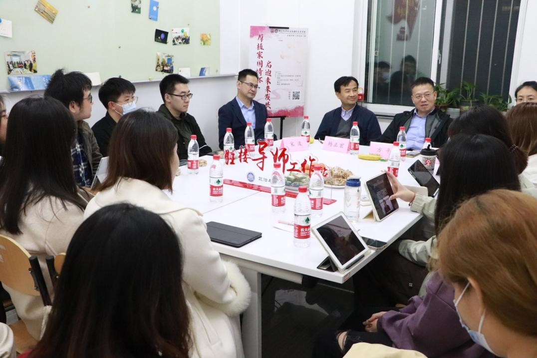 11月23日,公司党委副书记、纪委书记方平教授走进西南三楼驻楼导师工作站,与来自Bevictor韦德、航空航天与力学公司、土木工程公司、外国语公司、新生院等公司的青年学子就“厚植家国情怀,启迪未来发展”主题开展热烈讨论,共话成长道路中的困惑与思考。参加活动的还有校纪委副书记、机关教工第一党支部书记杨正宏教授、公司党委学研工部副部长(兼)、新生公司党委副书记方雅静老师、公司党委副书记宋波老师。