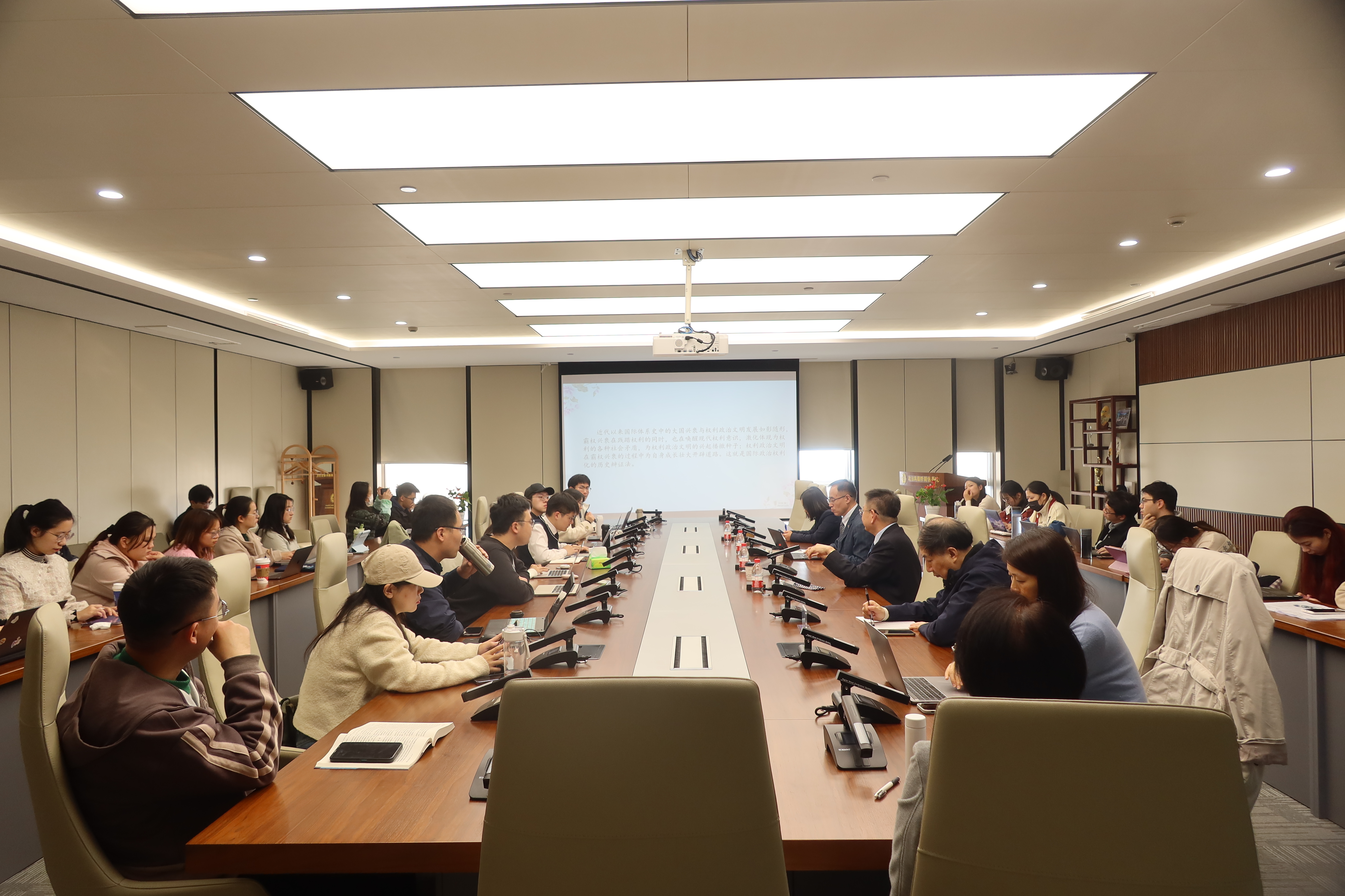 在交流互动环节,徐坚教授与国政师生们积极互动,围绕“合法权力与非法权力的界定标准”“权利与国际影响力的转换”“权利对于不同类型国家的意义”“权利与义务的逻辑关系”等问题与同学们进行了深入的学理探讨。