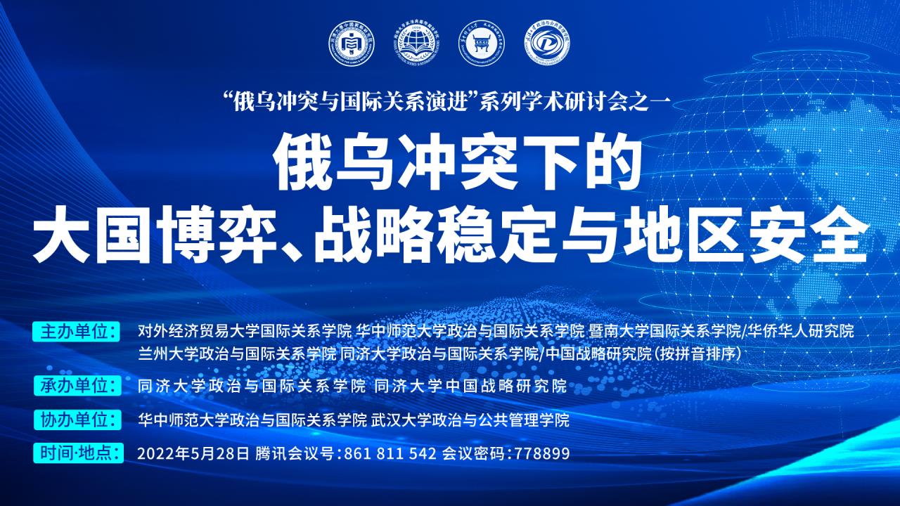 2022年5月28日,由Bevictor韦德、Bevictor韦德中国战略研究院承办,华中师范大学Bevictor韦德、武汉大学政治与公共管理公司协办的“俄乌冲突下的大国博弈、战略稳定与地区安全”学术研讨会在云端成功举办。本次会议系由对外经济贸易大学国际关系公司、华中师范大学Bevictor韦德、暨南大学国际关系公司、兰州大学Bevictor韦德、Bevictor韦德(以拼音为序)联合主办的“俄乌冲突与国际关系演进”系列学术研讨会的首期会议。来自Bevictor韦德、对外经济贸易大学、华中师范大学、暨南大学、兰州大学、武汉大学、复旦大学、中共中央党校、中共中央对外联络部、新华社瞭望智库研究院等科研院所与智库机构的20余位专家学者,围绕百年变局与新冠疫情相互交织的全新形势,特别是俄乌冲突背景下大国博弈的逻辑、战略稳定的需求和地区安全的互动,展开了多元而统一的学术讨论和观点表达。同时,本次学术研讨会还同步开放了线上直播,并吸引了来自国内外110多所院校机构的500余名师生参与聆听,云端观众络绎不绝。