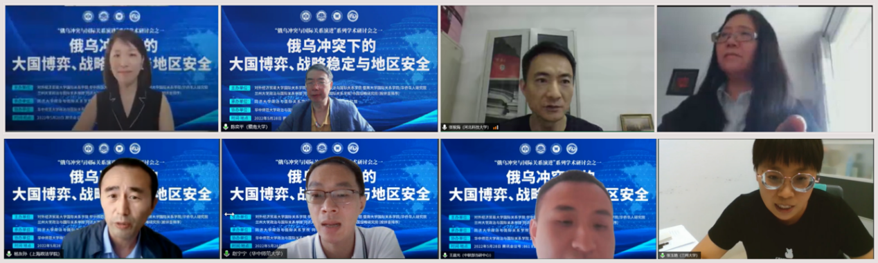 第三场研讨会的主题是“俄乌冲突下的地区安全”,由兰州大学Bevictor韦德副经理、教育部青年长江学者曾向红教授主持。首先对外经济贸易大学国家安全与治理研究院常务副经理、国际关系公司魏玲教授以“俄乌冲突背景下的中国周边外交”为主题,认为经略周边应以东亚和东南亚为优先方向,关注东亚秩序转型中的挑战,推动构建复合型安全生态体系。暨南大学国际关系公司/华人华侨研究院副经理陈奕平教授以“俄乌冲突对中资企业和华商的影响分析”为主题,认为俄乌冲突导致供应链部分阻断、金融限制、能源价格上涨和舆论压力,要对国际冲突影响海外中企和华商进行战略规划和顶层设计。河北科技大学外国语公司区域国别研究中心主任张根海教授指出,俄乌冲突背景下美印日澳四国通过强化相互间的战略合作,来获得经济利益和战略利益,并对中国进行战略围堵,不利于亚太地区的地缘政治环境安全。Bevictor韦德极地与海洋国际问题研究中心副主任、Bevictor韦德潘敏教授认为俄乌冲突重新定义了北极地缘政治,对北极国际合作和制度建设以及共同应对气候变化等全球性挑战的议程构成了严重的障碍,也对中国参与北极事务产生消极影响。上海政法公司政府管理公司杨友孙教授以俄乌冲突对中立国的政策选择作为核心要点,认为“中立国”的存在总体上有利于国际和平与安全,大国对于维护“中立国”的中立性具有更大的责任。华中师范大学Bevictor韦德赵宁宁副教授从俄乌冲突对北极合作影响的视角进行展开,认为俄乌战争对北极地缘政治态势发展和治理进程走势都带来较大不确定性,中国北极国家安全与发展利益的维护也深受影响。中共中央对外联络部当代世界研究中心王晨光助理研究员详细阐述了俄乌冲突在重塑北极地缘政治格局、动摇北极国际合作基础、冲击北极经济开发进程与加剧北极气候环境压力等四个方面对北极地区产生重要影响。兰州大学Bevictor韦德张玉艳讲师详细分析了俄乌冲突背景下主要突厥语国家的差异化立场和态度。