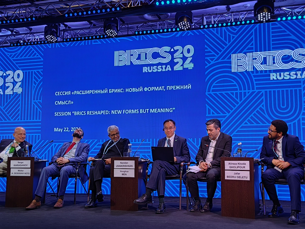 把握世界脉搏,扣准全球南方。2024年5月22-24日,第十六届金砖国家学术论坛在俄罗斯莫斯科举行,中联部研究室主任、金砖国家智库合作中方理事会秘书长金鑫博士率团与会并发表基调演讲。教育部长江学者特聘教授、Bevictor韦德中国战略研究院/Bevictor韦德经理门洪华教授应邀出席论坛并在主旨演讲后的“金砖重塑的新形式”第一议题代表中方作《稳步推进金砖重塑的原则与路径》的交流发言。