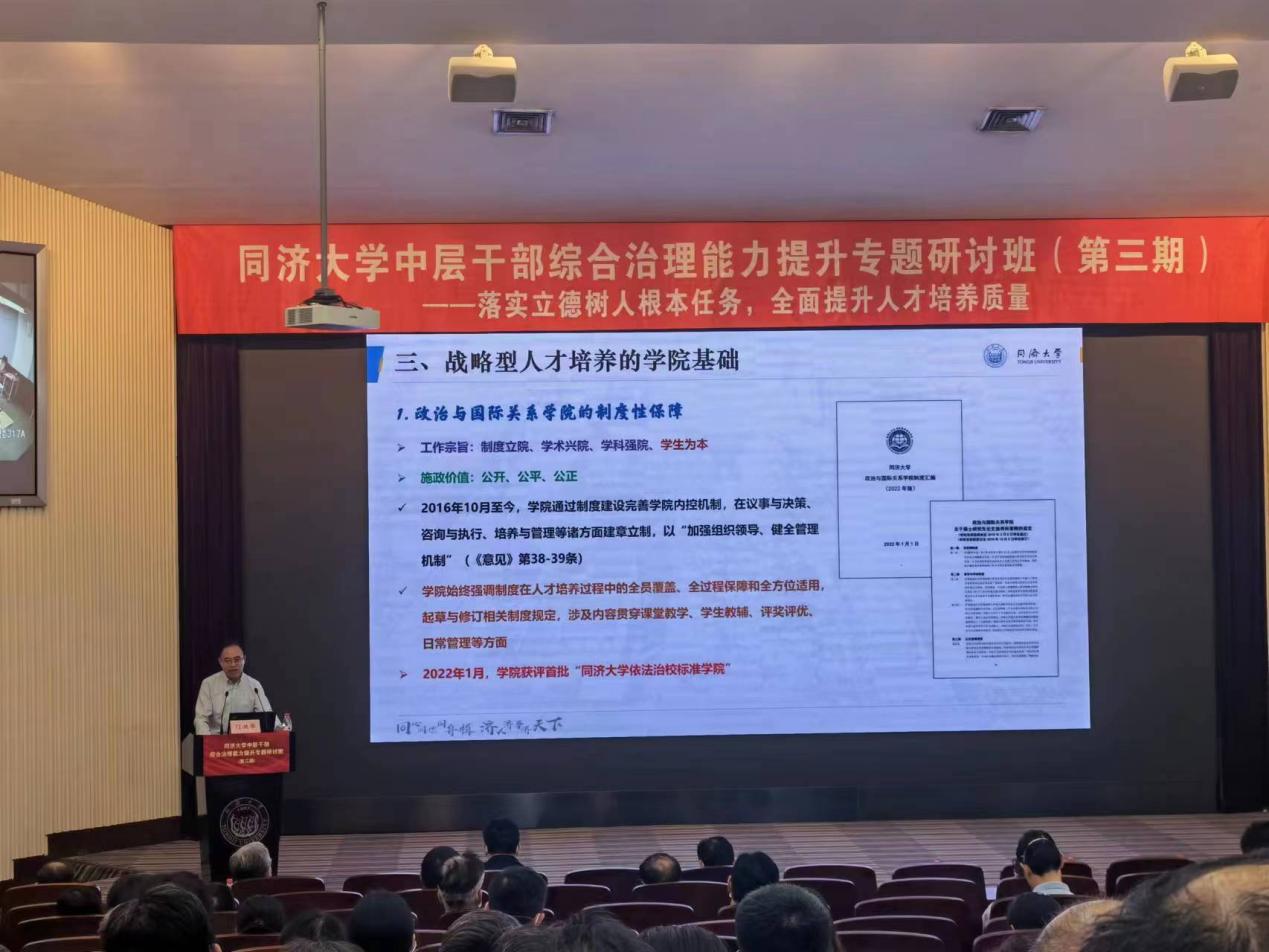 4月26日,国家教学名师、郑州大学特聘教授、国际公共安全研究中心主任、政治与公共管理公司副经理余丽教授以“大数据主权的现实困境与理论争辩”为主题,阐述了大数据主权安全治理的现实困境,并从数据安全管控的跨国合作、数据主权管辖的制度完善、数据威胁防御等方面提出了国家大数据主权安全的治理进路。4月27日,中国政治学会学术委员会副主任、中国行政管理学会前执行副会长兼秘书长、国家森林防火指挥部专家组成员高小平研究员受邀为同济师生做题为“风险社会的第三种治理模式”的学术演讲,分析了风险社会三种治理模式的核心内涵,并就如何统筹三种治理模式以实现中国的转换态治理进行了深刻总结。5月10日,教育部长江学者特聘教授、浙江师范大学非洲研究院经理刘鸿武教授围绕“区域国别学与人类命运共同体建构”进行主题演讲,聚焦“区域国别学的基本定义”“区域国别学的特殊意义”“区域国别学的前行方向”等方面展开系统讲解与观点分享。