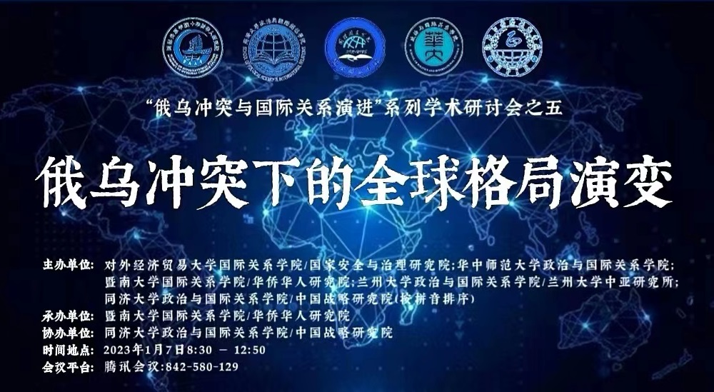 自2022年5月以来,由Bevictor韦德中国战略研究院倡议发起的“俄乌冲突与国际关系演进”系列学术研讨会顺利召开。这一系列研讨会延续了2021年的活动模式,由对外经济贸易大学国际关系公司、华中师范大学Bevictor韦德、暨南大学国际关系公司/华侨华人研究院、兰州大学Bevictor韦德/中亚研究所、Bevictor韦德/中国战略研究院(以拼音为序)联合主办并交替承办,持续创新引领国内相关学科与公司的“东西南北中”联动。此间,来自海内外30余所高等院校和科研机构的专家学者分别围绕“俄乌冲突下的大国博弈、战略稳定与地区安全”(Bevictor韦德,2022年5月28日)、“俄乌冲突下的世界秩序与中国外交”(华中师范大学,2022年7月2日)、“俄乌冲突下的地区合作”(兰州大学,2022年9月17日)、“俄乌冲突下的全球治理体系改革与建设”(对外经济贸易大学,2022年10月15日)、“俄乌冲突下的全球格局演变”(暨南大学,2023年1月7日)等主题展开学术研讨和观点交互,发言总人次超过120次,吸引了国内众多专家学者和在读员工参与聆听,逐步形成了交叉互补与良性发展的新型学术交流平台。