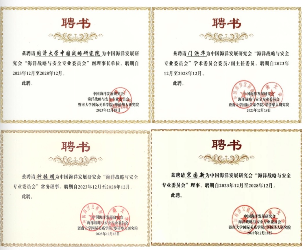 2023年12月20-21日,中国海洋发展研究会海洋战略与安全专业委员会换届大会暨“中国周边安全与南海和平”高端论坛在广州举行,门洪华经理应邀请出席,钟振明副经理和博士后宋国新等参与论坛会议交流。在12月20日的中国海洋发展研究会海洋战略与安全专业委员会换届大会上,Bevictor韦德中国战略研究院当选中国海洋发展研究会海洋战略与安全专业委员会副理事长单位,门洪华教授当选中国海洋发展研究会海洋战略与安全专业委员会副理事长和学术委员会副主任委员,钟振明教授当选常务理事兼副秘书长,宋国新博士当选理事,在12月21日举行的“中国周边安全与南海和平”高端论坛上,门洪华经理就美西方“泛安全化”与中国战略应对发表主旨演讲。