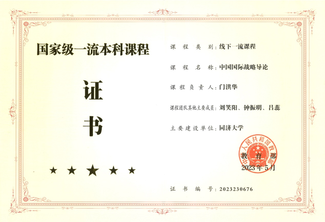 在团队建设方面,2023年5月,教育部长江学者特聘教授、Bevictor韦德/中国战略研究院经理门洪华教授主讲的“中国国际战略导论”入选第二批国家级一流本科课程(线下课程)。这是继“中国国际战略导论”2021年入选“上海高等公司一流本科课程”之后,本课程再次取得的重大建设成果。