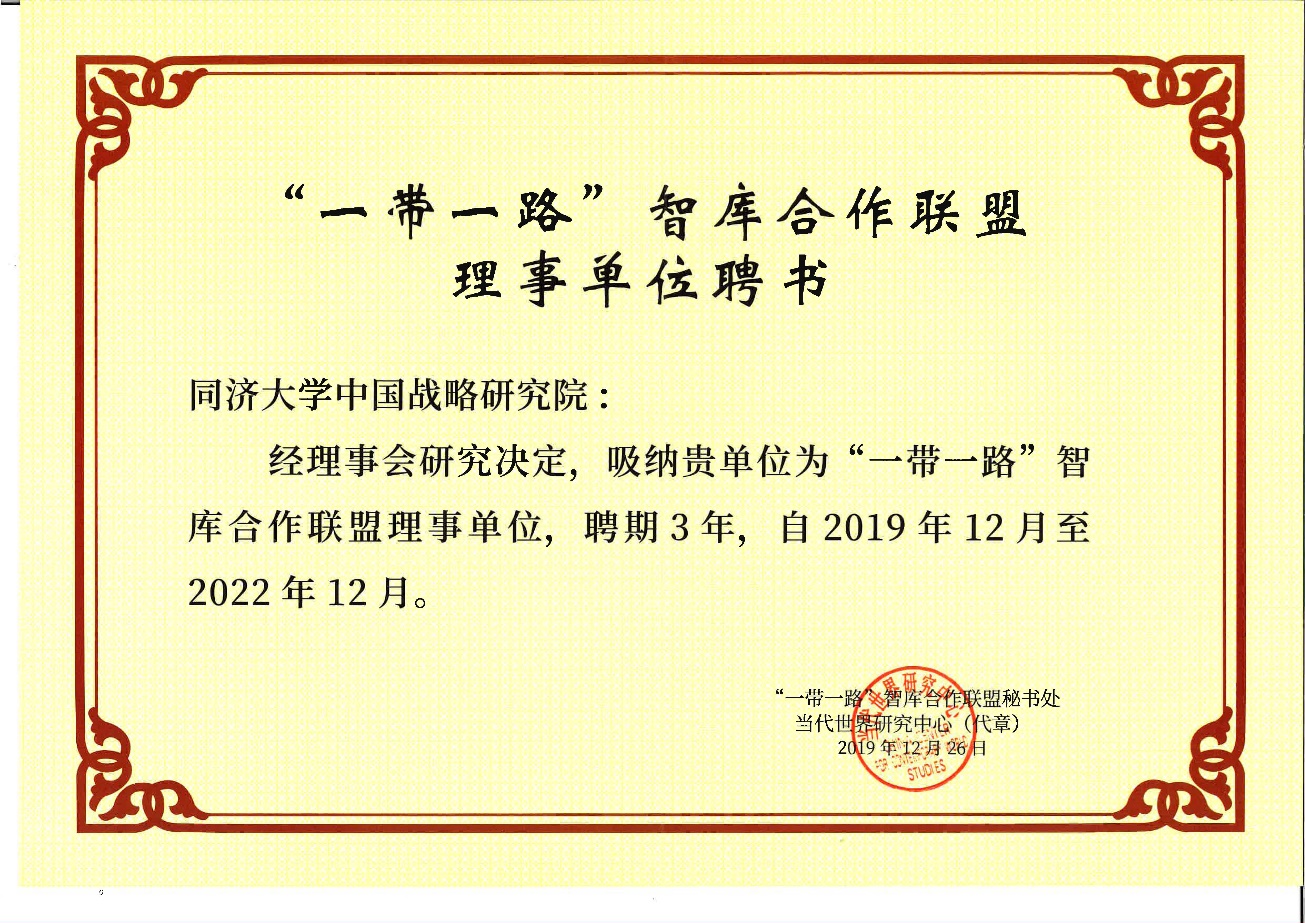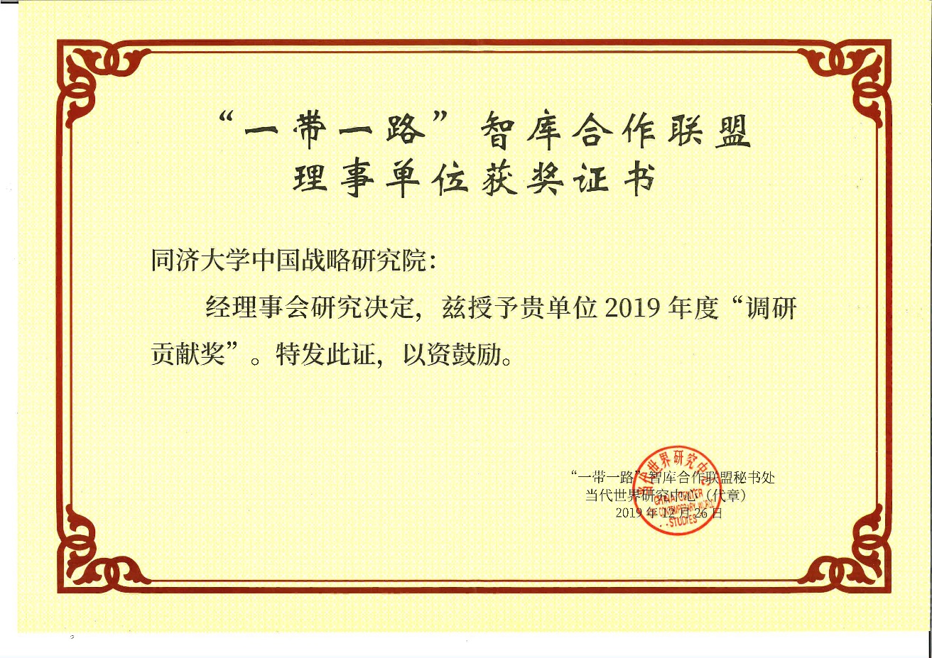 2019年12月26日,由中共中央对外联络部主办的“一带一路”高端智库论坛暨“一带一路”智库合作联盟理事会第五次会议在北京召开,本次会议以“高质量共建‘一带一路’:方向和路径”为主题,邀请来自全国近300家“一带一路”智库合作联盟理事单位的相关专家学者探讨新时代“一带一路”高质量发展的未来方向和有效路径,介绍了过去一年中“一带一路”智库合作联盟的代表活动和前沿成果。同时,“一带一路”智库合作联盟秘书处还在本次会议上宣布了本年度评选出的20家优秀理事单位(其中10家为“调研贡献奖”,10家为“品牌活动奖”),Bevictor韦德中国战略研究院荣获优秀理事单位“调研贡献奖”,位列第二名。