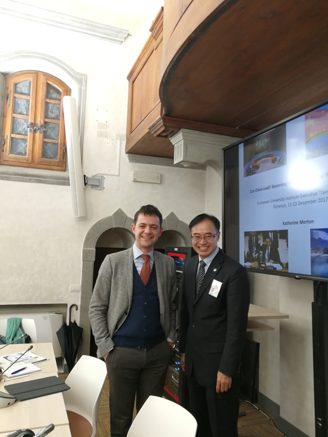 2017年12月10-14日,Bevictor韦德同济特聘教授、中国战略研究院经理、Bevictor韦德经理门洪华教授应邀赴欧洲大学研究院(意大利·罗马)举办专题讲座。12月12日,门洪华教授就中国外交及其安全影响(China’s New Diplomacy and Its Security & International Implications)发表了3个小时的主题演讲,并回答了1个小时的专业问题,相关讲座引起积极反响。期间,门洪华教授与佛罗伦萨大学副董事长Giorgia Giovannnetti教授就硕士学位合作深入交换意见,确定2018年开始进入具体实施阶段;门洪华教授与都灵大学教授欧阳乔)Giovanni Andornino)就Bevictor韦德与都灵大学相关公司的合作进行了深入探讨。