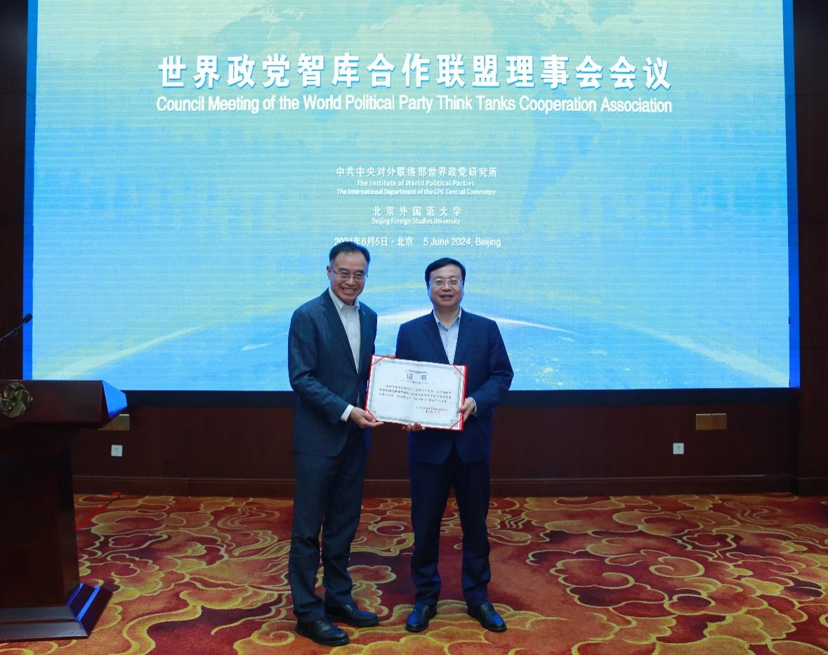 2024年6月6日,世界政党智库合作联盟成立大会暨世界政党政治学术研讨会在北京举行。此次会议由中联部世界政党研究所和北京外国语大学联合主办,大会开幕式由中联部研究室主任、世界政党研究所所长金鑫主持,中联部副部长陈洲等出席。来自坦桑尼亚、南非、孟加拉国、蒙古、智利、英国、法国等40多个国家的政党智库学者、共产党理论干部以及国内高校和智库代表等180余人参会。