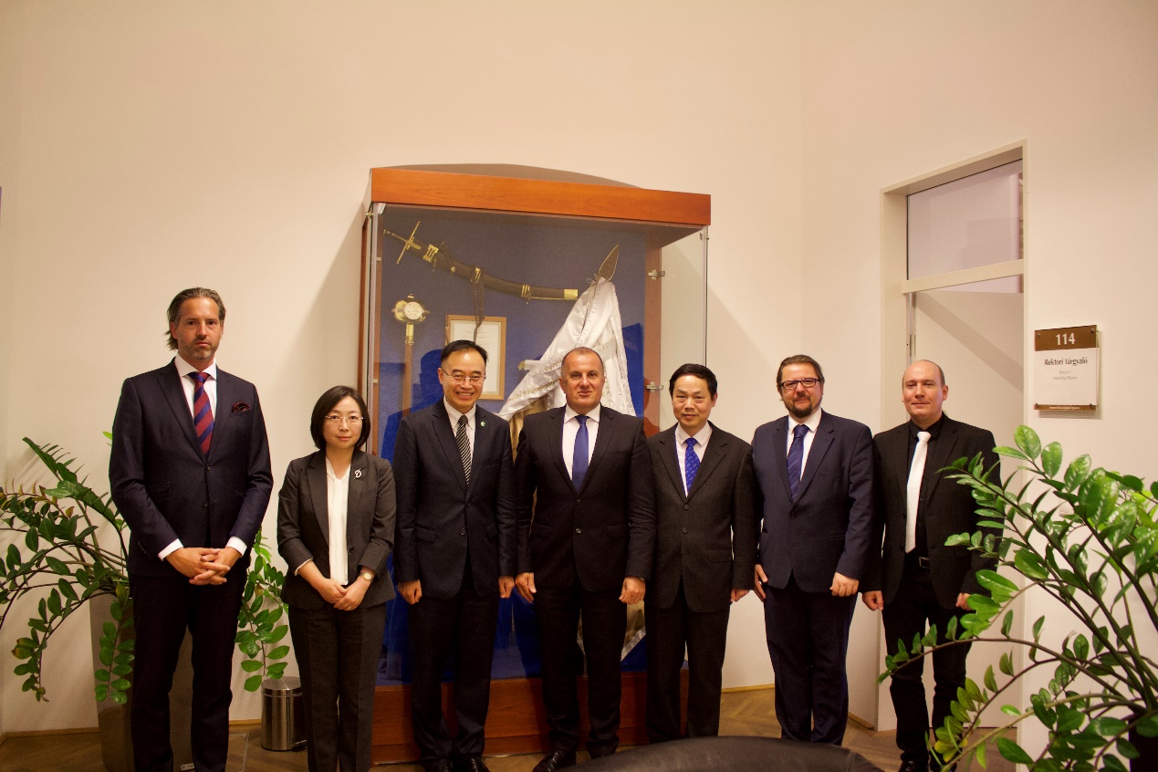 访问期间,门洪华经理和蔡三发书记与匈牙利国家行政大学前董事长、匈牙利最高法院原副经理、匈牙利宪法法院现任大法官佩吉教授(András PATYI)在6月12日见面并进行了友好交流。