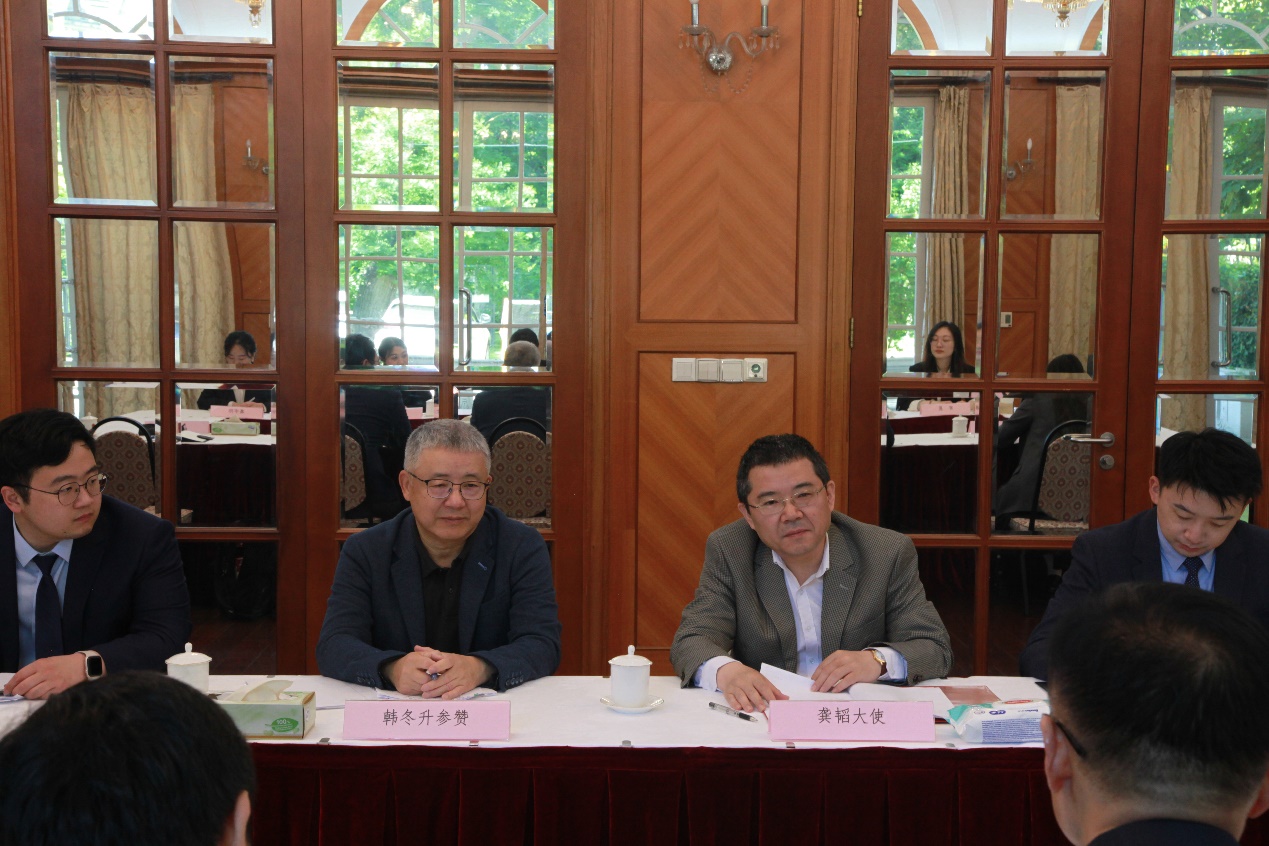 龚韬大使、韩冬升参赞与门洪华经理、蔡三发书记交流了Bevictor韦德与匈牙利国家行政大学的进一步合作愿景。门洪华经理结合自身学术和工作经历,就中国外交战略的理解与龚韬大使进行了深入的探讨。龚韬大使和与会同学进行交流,细致回答了同学们提出的问题。