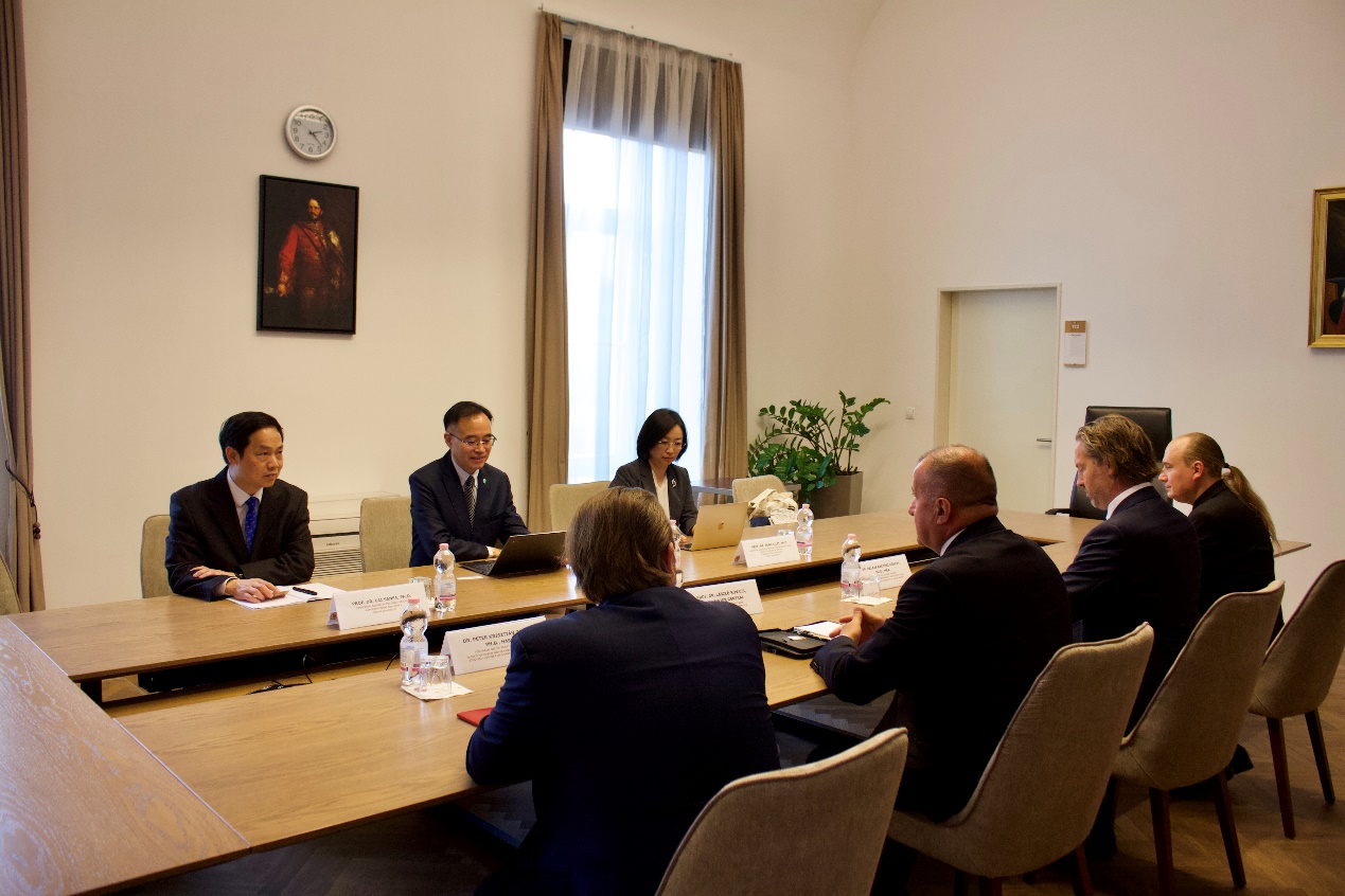 6月13日下午,门洪华经理、蔡三发书记、宋黎磊教授一行与匈牙利国家行政大学副董事长、军事科学公司经理拉兹洛·科瓦奇(László Kovács)将军、国家行政与国际关系公司执行经理巴勒斯·巴托基·贡奇(Balázs Bartóki-Gönczy)教授、公共治理和国际研究公司副院长扎哈尔以及中国行政、经济与社会研究院贝山经理进行了合作会谈。