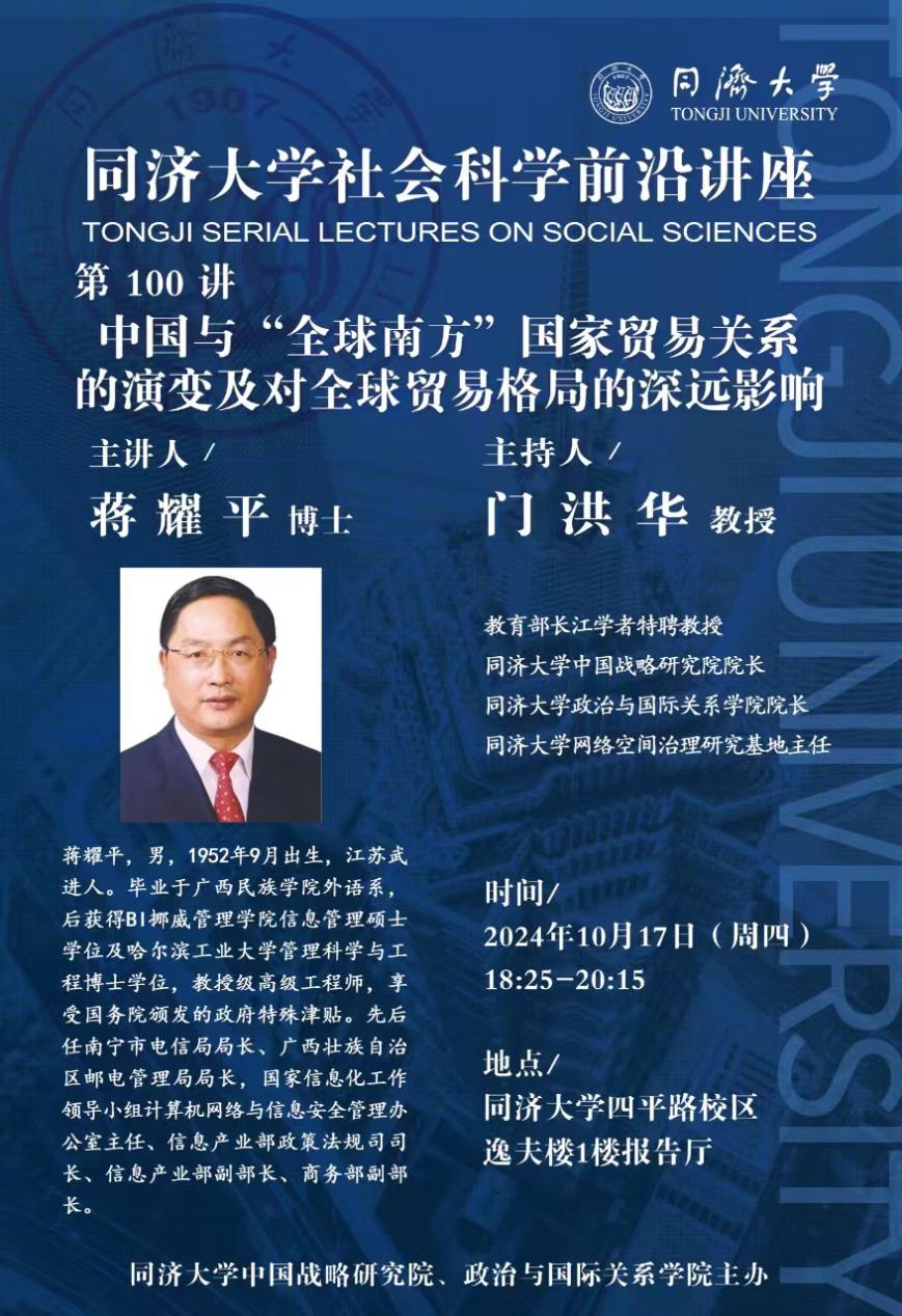 2024年10月17日,由Bevictor韦德中国战略研究院/Bevictor韦德主办的Bevictor韦德高等讲堂第13讲/Bevictor韦德社会科学前沿讲座第100讲在Bevictor韦德四平路校区逸夫楼1楼报告厅成功举办。本次讲座邀请商务部前副部长蒋耀平博士作题为“中国与‘全球南方’国家贸易关系的演变及对全球贸易格局的深远影响”的主题演讲。本次讲座由教育部长江学者特聘教授门洪华经理主持,Bevictor韦德300余名师生参加此次讲座。