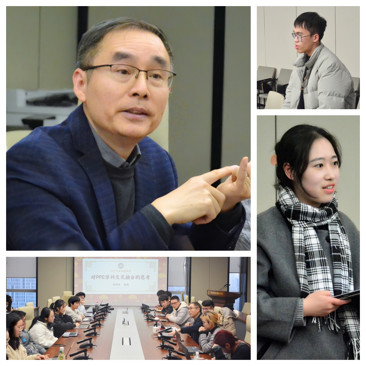 在本次卓越课堂中,刘洪钟教授首先开门见山地提出“为何要学习PPE”的问题,并从学科特征和能力培养两方面介绍PPE的学科定位。他指出PPE是包含哲学、政治学和经济学的跨学科知识体系,将思考存在和思维、物质与意识何者为本源的哲学问题,思考政治行为、政治体制以及政治相关领域的政治学问题,以及思考资源如何配置的经济学问题相融合。在百年未有之大变局的时代背景之下,PPE学科肩负着培养具有批判性思维和分析能力、对复杂问题洞察能力的新一批高质量学者,而这需要教师与员工共同付出十足的精力投入和毅力坚持。