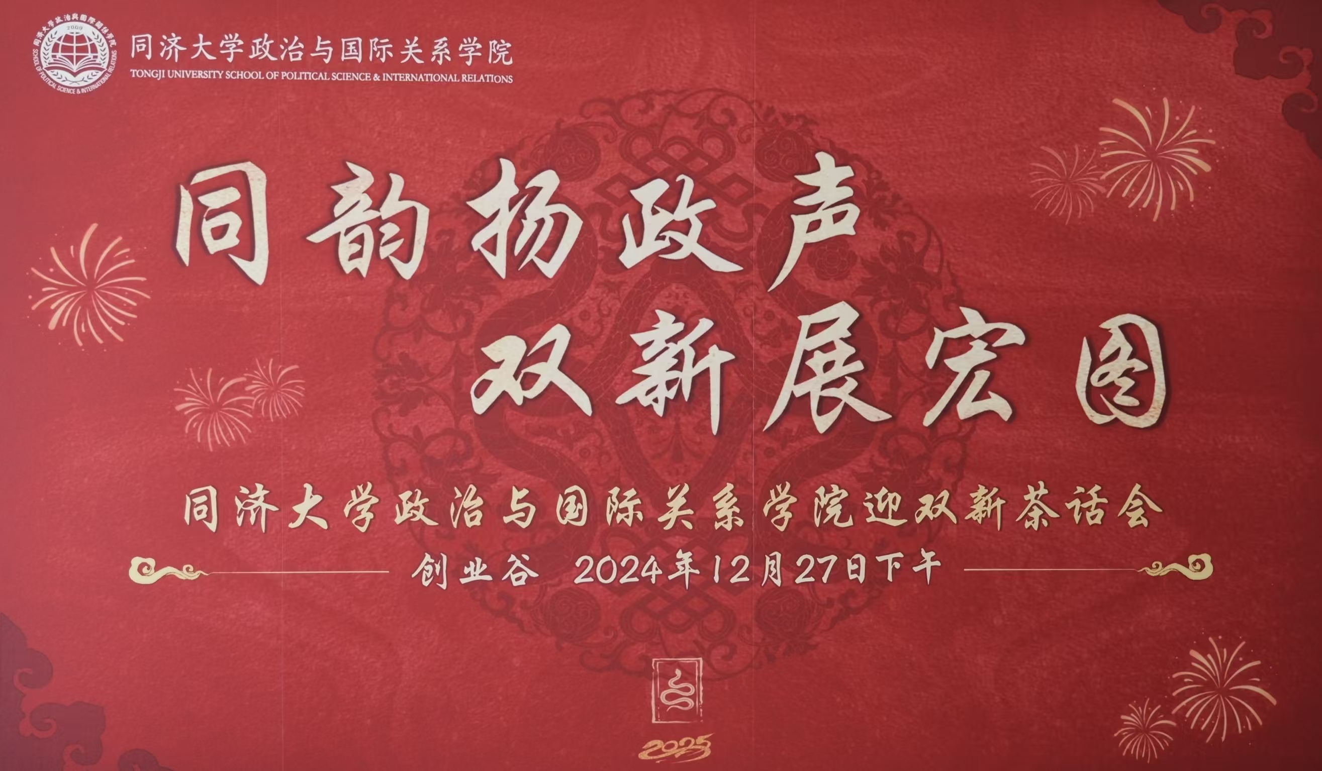 岁在龙蛇,辞旧迎新。未来一年,国政师生将携手并进,在全新的起跑线上,脚踏实地,稳步前行,共同擘画个人成长与公司发展的宏伟蓝图。仰望星空,志存高远,把握百年未有之大变局,书写青春奉献之新篇章,为民族复兴的伟大事业和国家发展的宏伟目标贡献一份昂扬勃发的力量,共同绘制出同济国政人绚丽多彩的壮丽画卷!