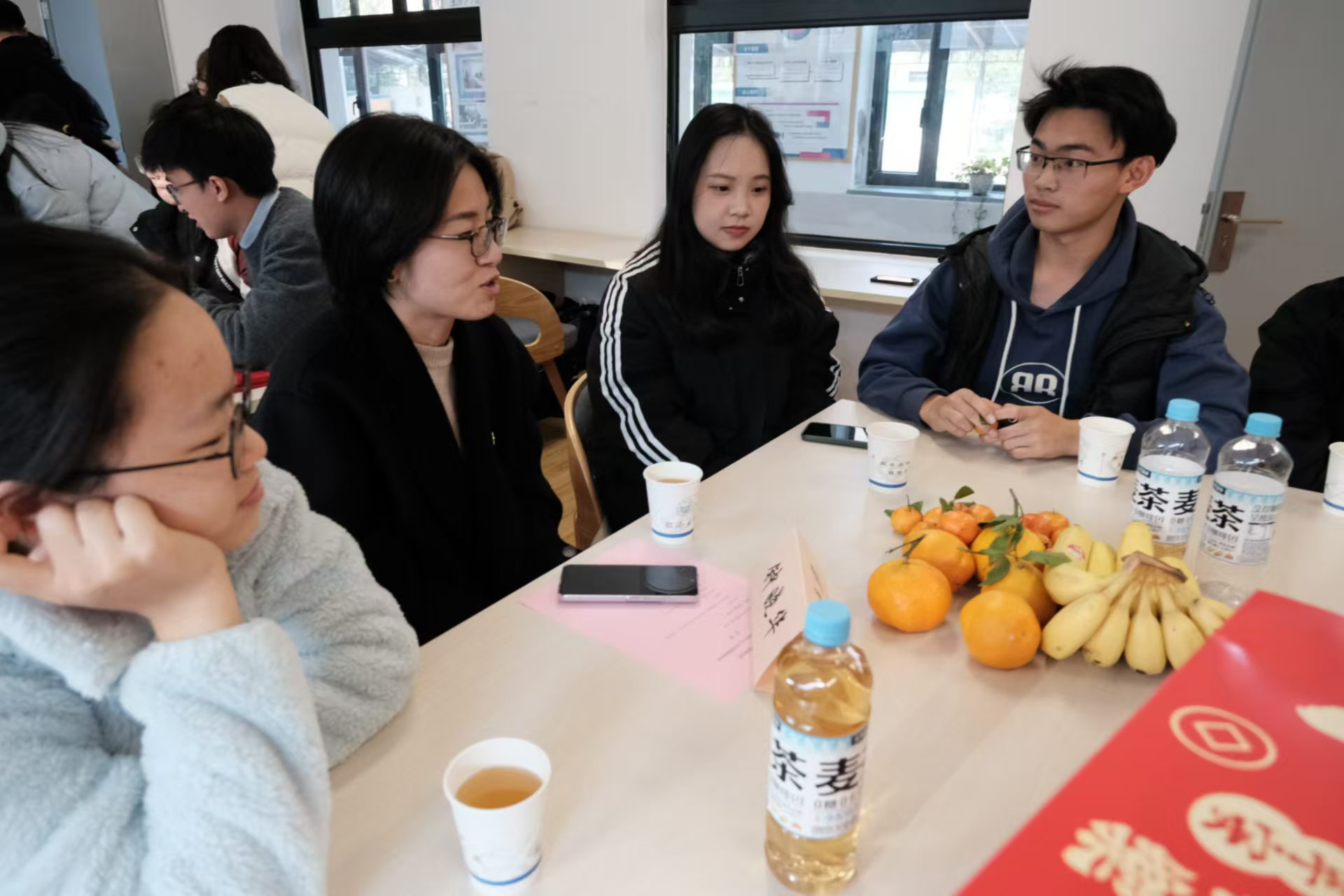 师生畅谈环节,现场氛围热烈,在场师生围绕学业发展、论文撰写、专项调研等内容展开深入的交流讨论,同学们怀揣真诚、畅所欲言,老师们耐心倾听、耐心作答。思维碰撞出火花,浓浓情谊在师生间流淌。