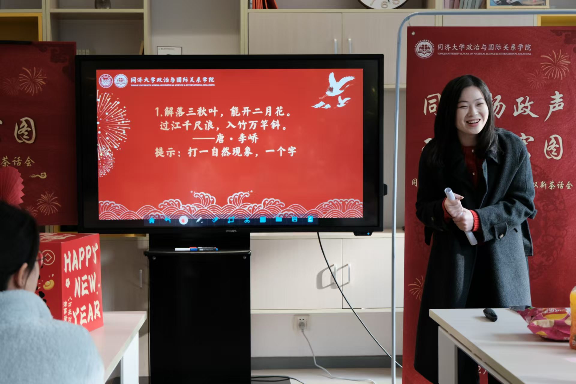 座谈会接近尾声,工作人员精心筹备的互动游戏再次点燃全场。字谜挑战、听歌识曲、成语接龙等互动环节趣味横生、轻松欢快,师生们热情高涨,踊跃抢答,彼此配合默契,欢声笑语此起彼伏。