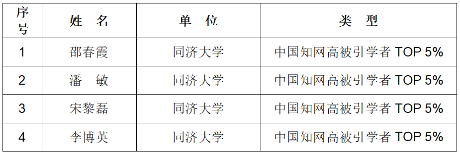 共有4名教师入选“2024中国知网高被引学者TOP 5%”榜单,分别是: