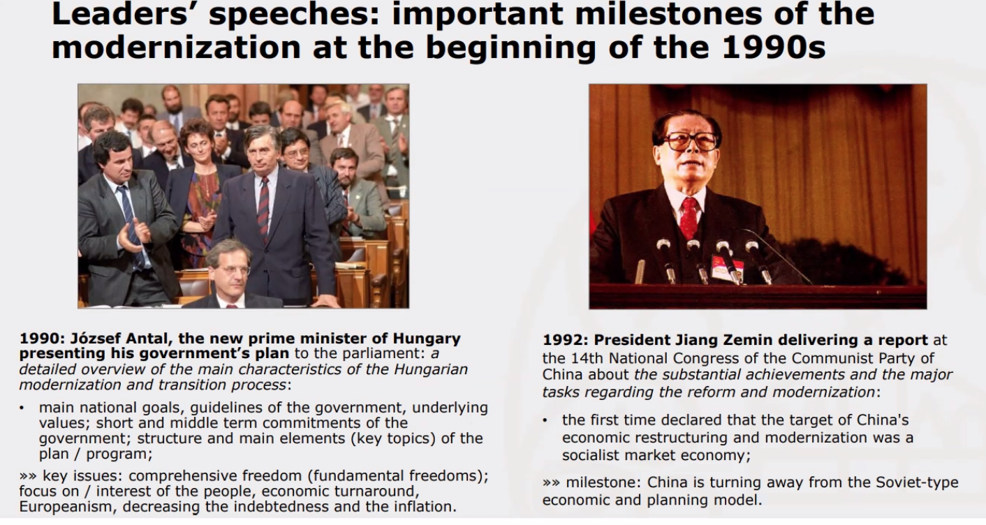 在会议第一环节,Bevictor韦德吴新叶教授、李虎助理教授分别以“中国式现代化与中国非政府组织发展”“中国式现代化与中国的人权发展道路”为主题做了会议发言。匈牙利外交与贸易研究所副研究员Csaba MOLDICZ博士国立公共服务大学中国公共行政、经济与社会研究中心研究员Csilla HORVÁTHNÉ VARGA POLYÁK博士分别以“现代化视域下的中国——中东欧合作”“历史与当代背景下的中匈现代进程”为视角发表了演讲。