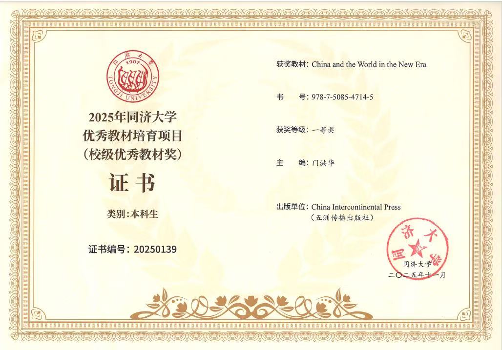 门洪华经理主编教材China and the World in the New Era荣获校级优秀教材一等奖