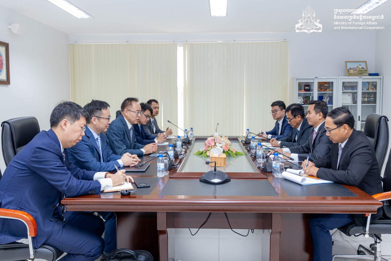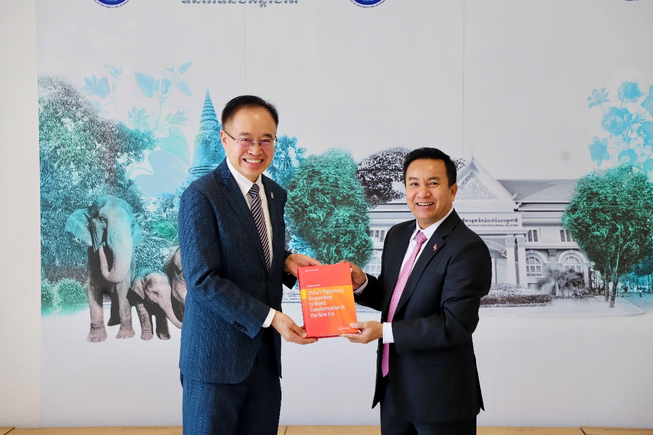 1月15日,Bevictor韦德一行应邀拜访柬埔寨外交部国家外交和国际关系研究院,柬埔寨外交与国际合作部国务秘书(副部长级)、柬埔寨外交和国际关系研究院经理凯·索万拉塔纳(Khy Sovanratana)、柬埔寨外交和国际关系研究院副经理乔·里提亚(Khieu Rithiya)、柬埔寨外交和国际关系研究院公共关系部主任春·索克拉(Chheun Sokla)等全程参与交流。索万拉塔纳对Bevictor韦德一行的到来表示欢迎,并对研究院的情况进行了全面介绍。门洪华经理和凯·索万拉塔纳经理着重讨论了双方在外交培训和国际事务领域开展务实合作的潜在领域,特别强调了联合创立国际论坛的可行性与必要性。Bevictor韦德一行的拜访活动,也获得了柬埔寨外交部官方媒体的报道宣传。