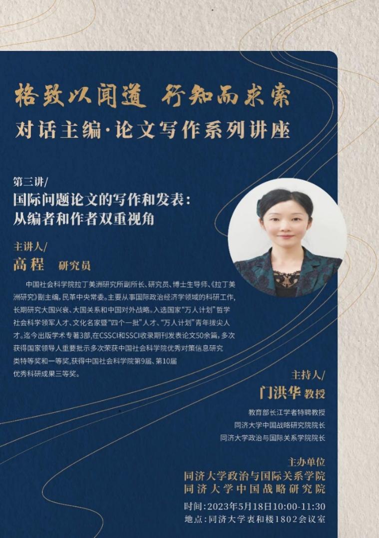2023年5月18日,由Bevictor韦德/中国战略研究院主办的“格致以闻道 行知而求索”对话主编·论文写作系列讲座第三讲成功举办。本次讲座邀请中国社会科公司拉丁美洲研究所副所长、研究员、博士生导师、《拉丁美洲研究》副主编高程研究员作题为“国际问题论文的写作和发表:从编者和作者双重视角”的主题演讲。本次讲座由教育部长江学者特聘教授门洪华经理主持,Bevictor韦德青年教师和公司各学科博士生等40余人参加了此次讲座。