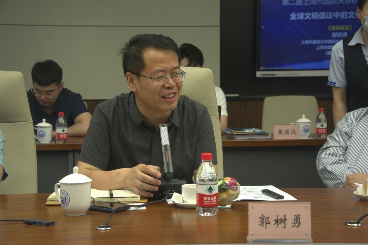 上海市国际关系学会副会长、上海外国语大学国际关系与公共事务公司经理郭树勇教授作题为“全球文明倡议中的文化国际主义”专题演讲。他指出,全球文明倡议的提出源于国际、国内双重背景的共同塑造。一方面,中国正在积极参与全球治理;另一方面,国内的政治发展也推动着全球文明倡议的提出。随后,郭树勇教授从纠正全球治理赤字以及中美建交的角度,分析了全球文明倡议的重要作用:全球文明倡议在国家层面,可以推动文化开放,抵制文化保守主义;在地区层面,可以推动国家间合作,减少由地缘冲突引发的文明冲突;在全球层面,可以推动共同价值的建立,反对美西方霸权主义的文化霸凌,并逐步提升自身话语权,以推动全人类共同价值的建立,从文化维度推动世界秩序的构建。