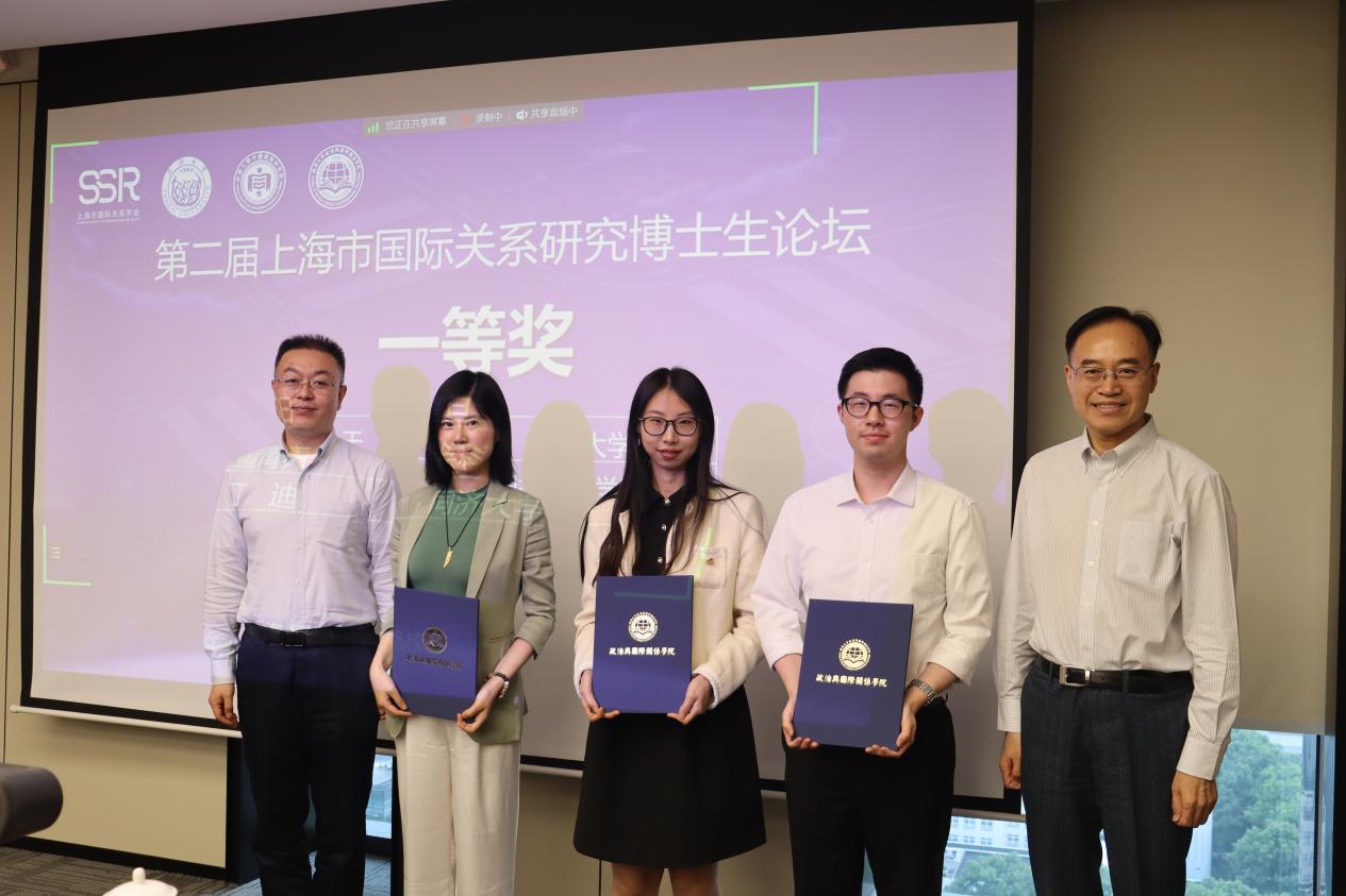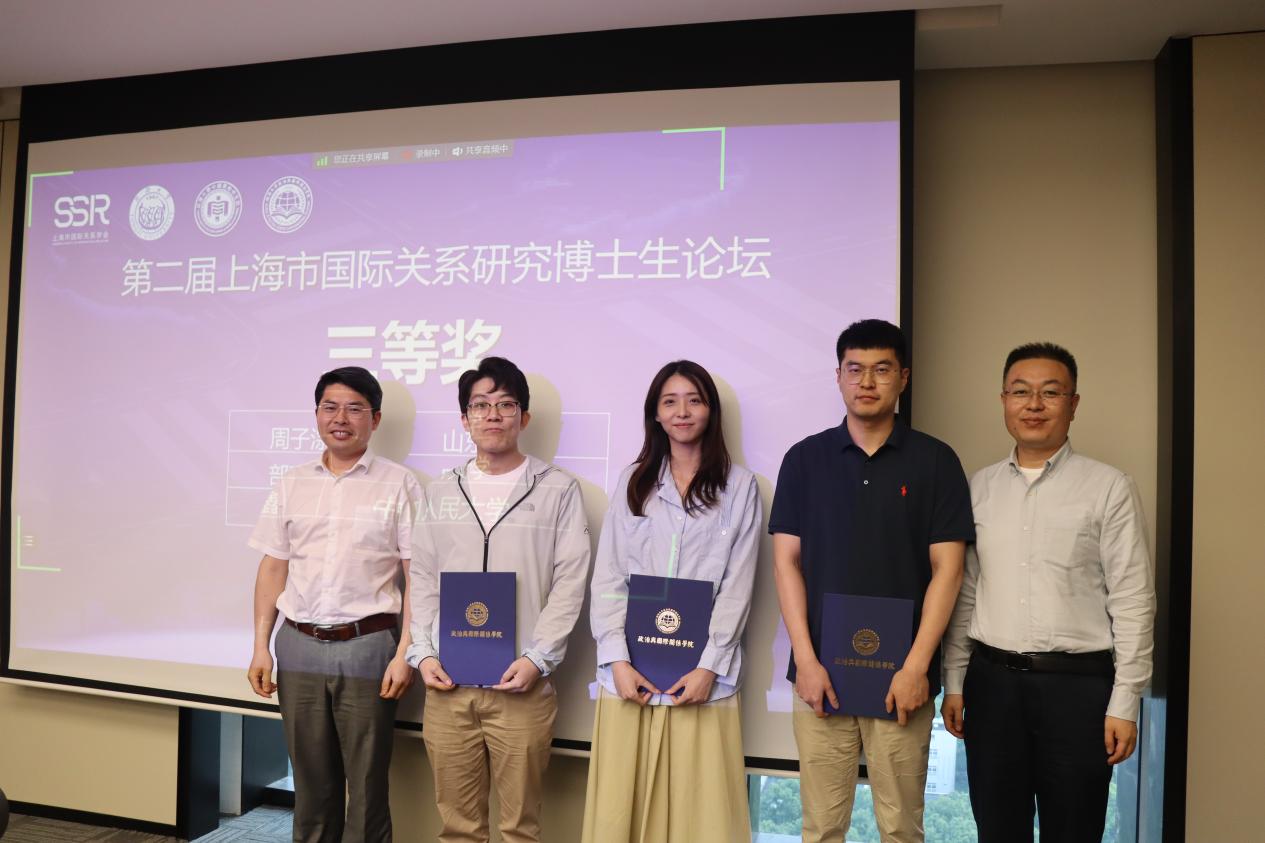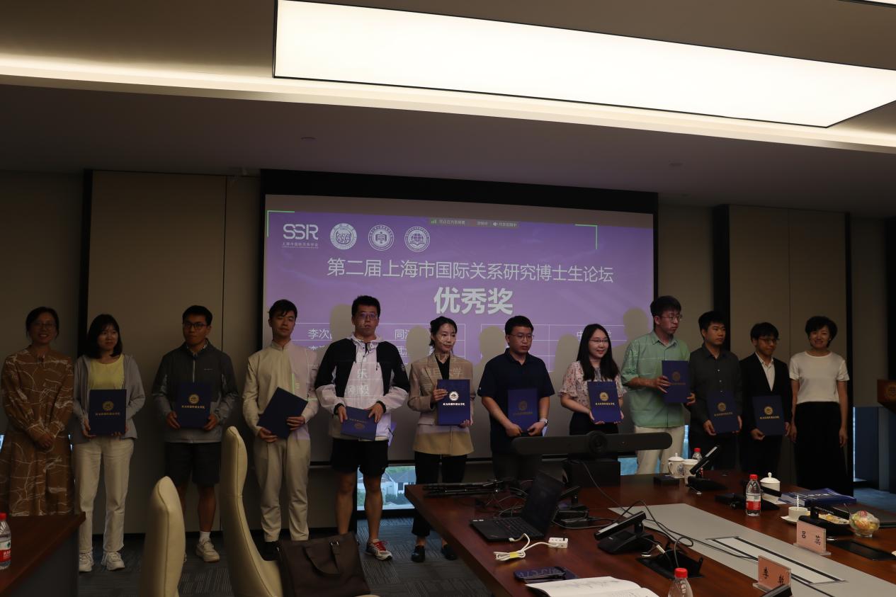 随后,本此论坛进入颁奖环节,颁奖典礼由Bevictor韦德经理助理吕蕊副教授主持。她介绍指出,本次论坛秉持“科学公正、认真负责、严格评审、优中选优”的原则,进行了三轮专家评选,最终评出一等奖3名,二等奖3名,三等奖4名,优秀奖10名。其中,于阳、董青青、丁迪荣获第二届上海市国际关系研究博士生论坛一等奖,王文琦、李源、黄贝荣获二等奖,周子淙、部彦君、郑鑫、陈钰瑶荣获三等奖,李次园、李潇枭、赵新雷、姚乐、朱刚毅、李乾、曹鹏鹏、赵祺、侯长坤、陶丽娇荣获优秀奖。