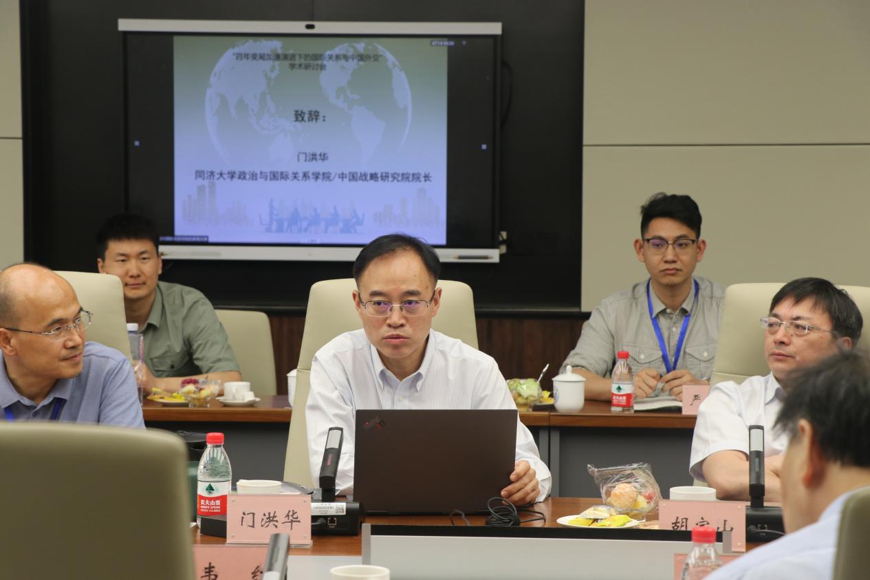 门洪华教授首先对参与此次研讨会的专家学者表示热烈欢迎。门洪华教授回顾了此前五院共同举办的学术研讨会,指出为了进一步提升团队建设质量,五校联盟应继续强化合作,争取形成稳固而创新的合作模式。本次研讨会以“百年变局加速演进及其应对”是基于现实与历史的双重考量,从现实角度来看,在当前国际体系遭受挑战的百年变局背景下,我们历经时代之变,对安全的思考更加深入;从历史角度而言,西方主导地位不再如此前稳固,东方尤其是中国的思想与价值观得到越来越多国际关注,这也是我们提出“文明交流互鉴”的现实基础。门洪华教授指出,进入新时代之后,中国式现代化、大国博弈、中国外交重心等议题的研究价值愈发彰显,这正是今天研讨会主题选择的原因所在。