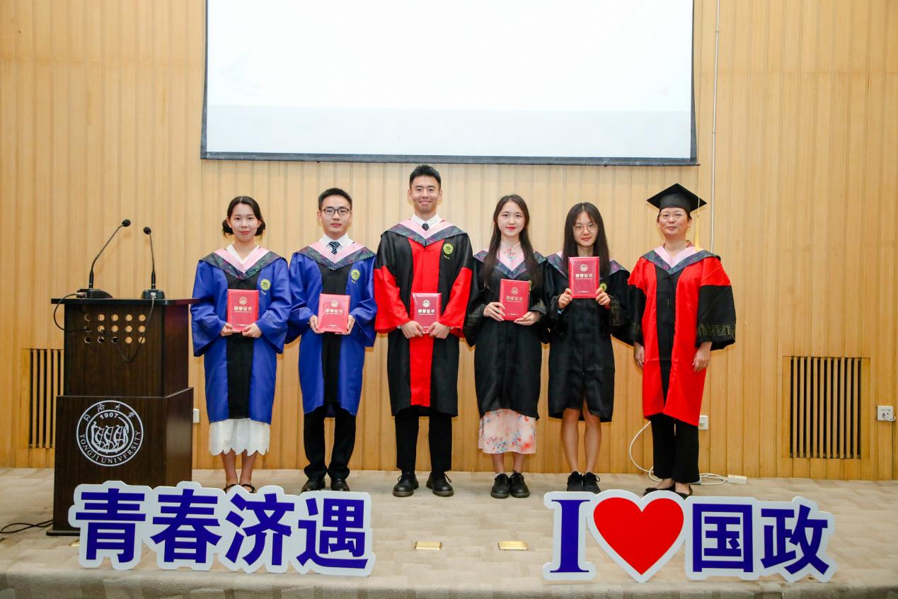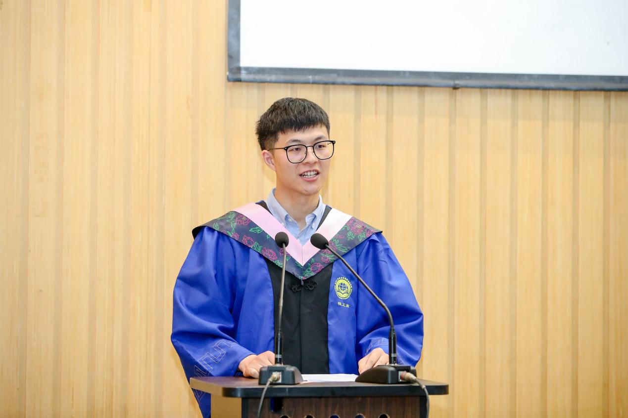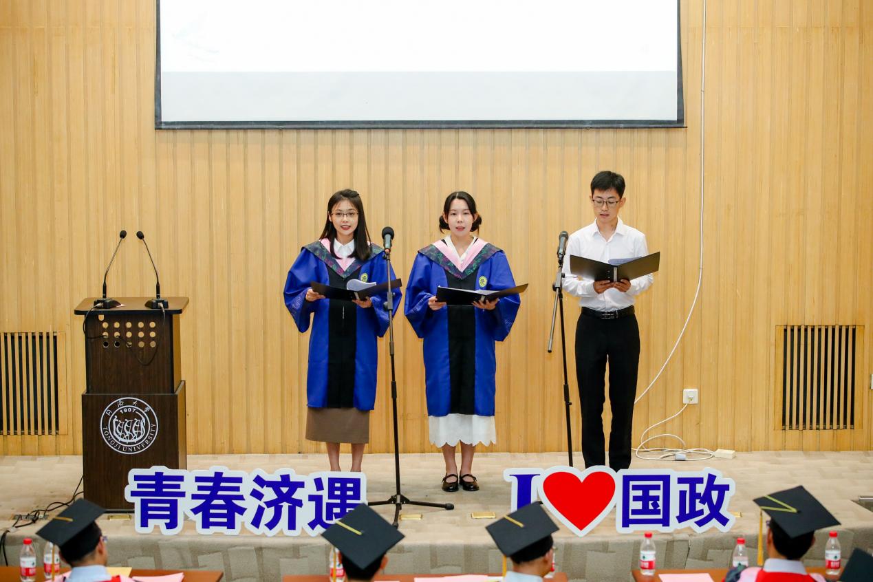 在毕业生代表发言环节,本科生代表冯骏鹏同学感谢国政公司全体老师教授广博的学术知识和严谨的治学态度,相信各奔东西的同济国政人会不负时代、不负韶华,与国同修远志、从政济扬新舟,让青春在火热实践中绽放绚丽之花;硕士生代表谭帅同学提到母校、公司已成为大家的精神家园、心灵港湾与情感依托,会始终将老师们的谆谆教诲铭记于心,以青春之我、奋斗之我开拓人生、奉献社会,干干净净做人、认认真真做事、踏踏实实做学问;博士生代表俞钦文同学表示学习与进步是永恒的主题,正是公司教会自己与学习为伴、与时间为伴、与卓越为伴,能够坦然面对成功与失败,并将学术研究作为终身事业矢志奋斗。