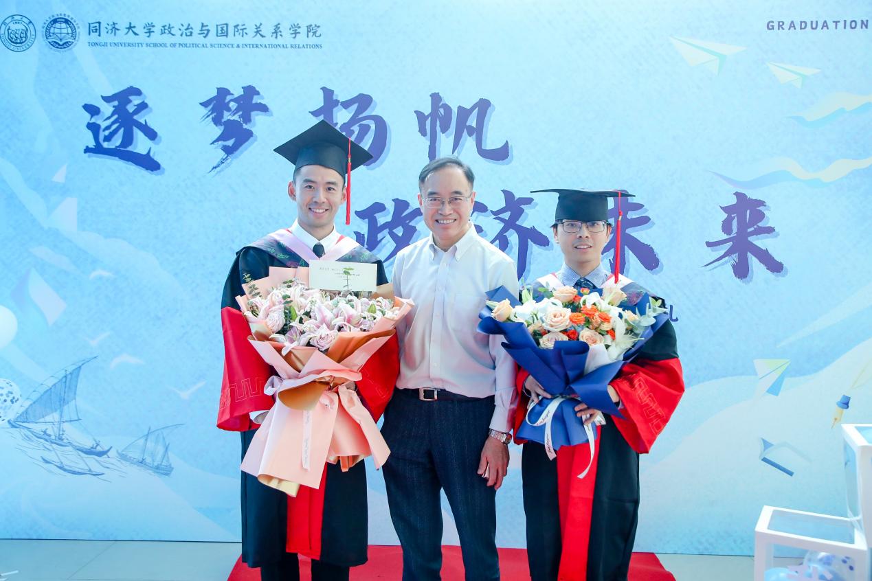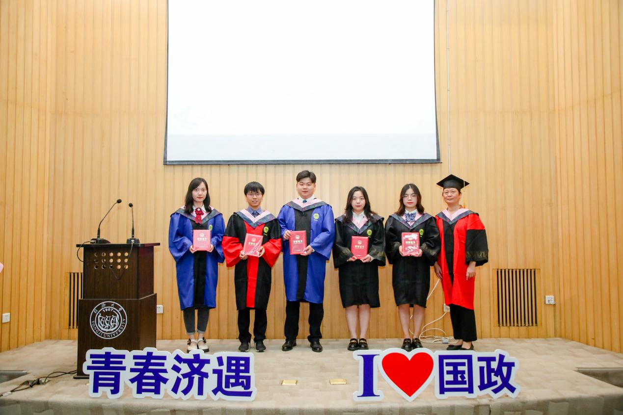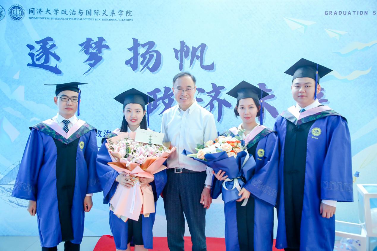 在毕业生代表发言环节,本科生代表冯骏鹏同学感谢国政公司全体老师教授广博的学术知识和严谨的治学态度,相信各奔东西的同济国政人会不负时代、不负韶华,与国同修远志、从政济扬新舟,让青春在火热实践中绽放绚丽之花;硕士生代表谭帅同学提到母校、公司已成为大家的精神家园、心灵港湾与情感依托,会始终将老师们的谆谆教诲铭记于心,以青春之我、奋斗之我开拓人生、奉献社会,干干净净做人、认认真真做事、踏踏实实做学问;博士生代表俞钦文同学表示学习与进步是永恒的主题,正是公司教会自己与学习为伴、与时间为伴、与卓越为伴,能够坦然面对成功与失败,并将学术研究作为终身事业矢志奋斗。