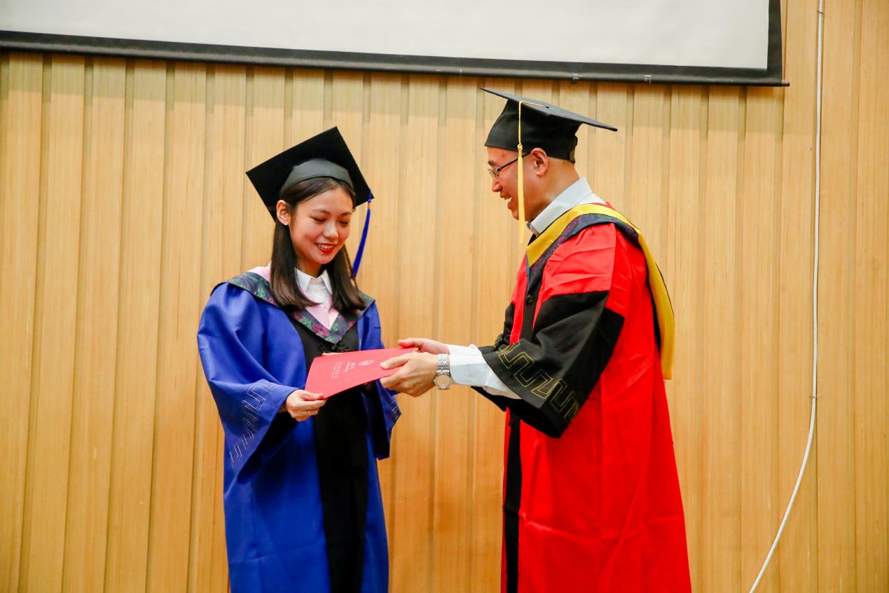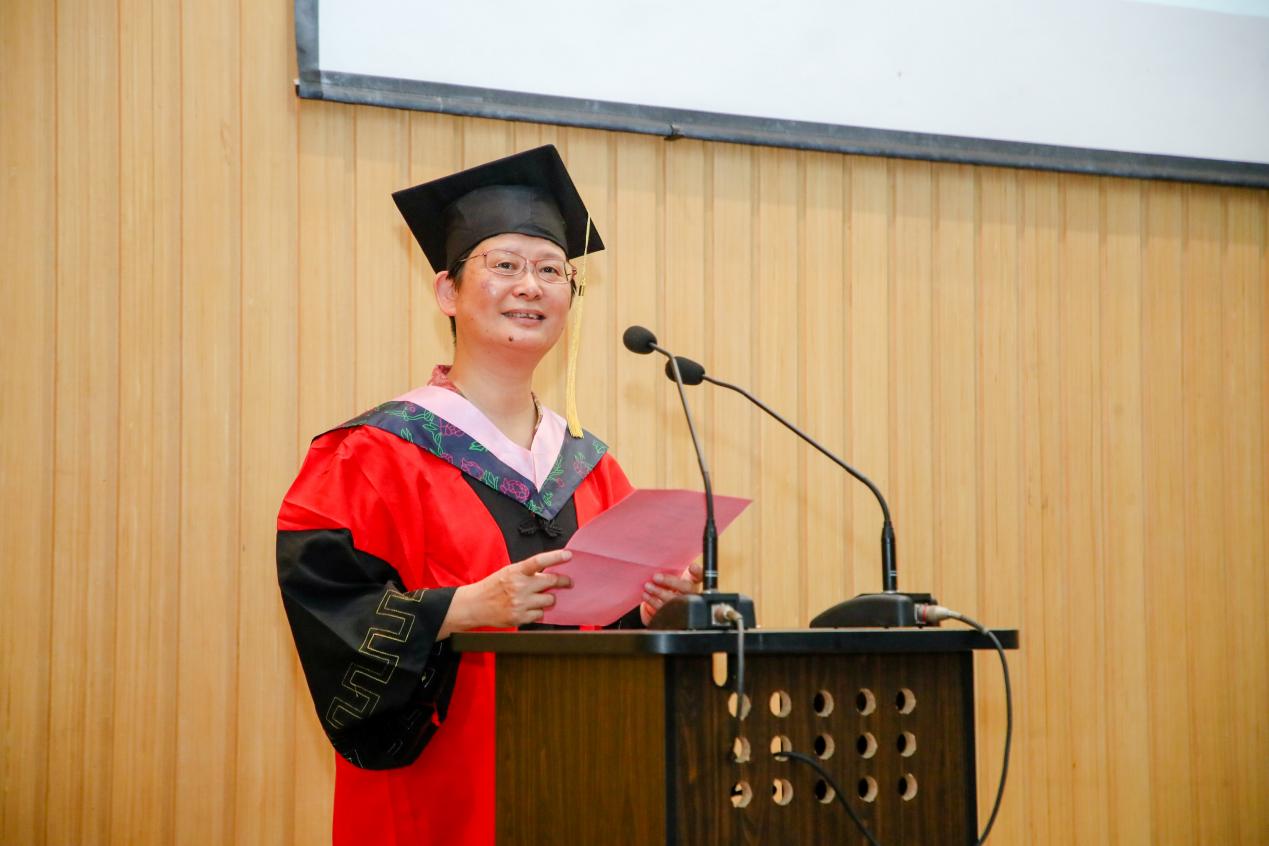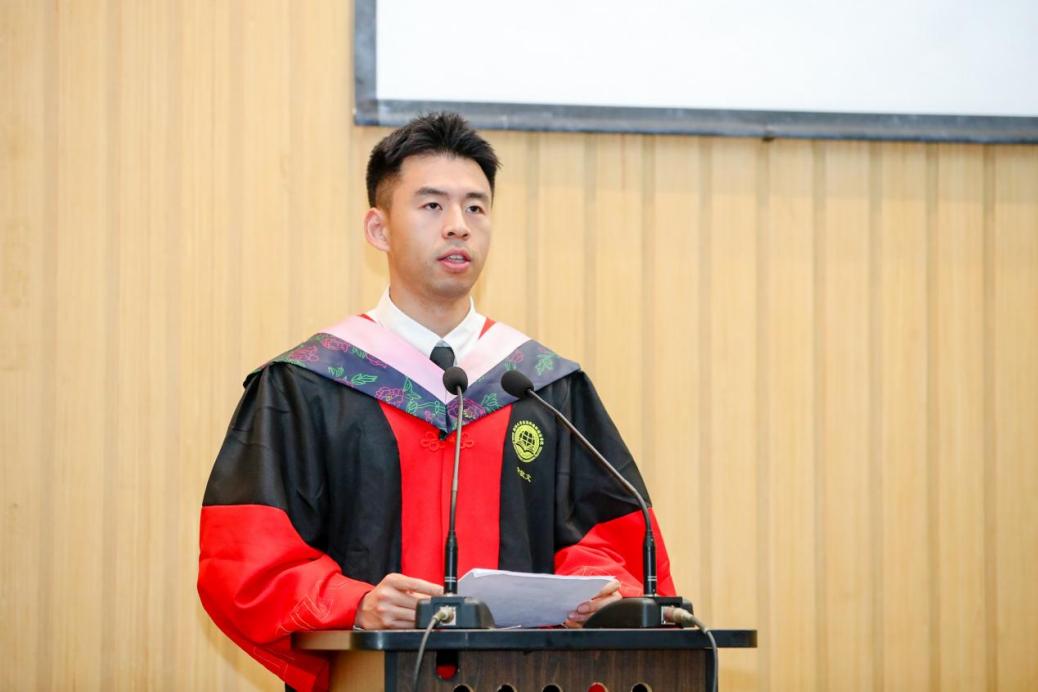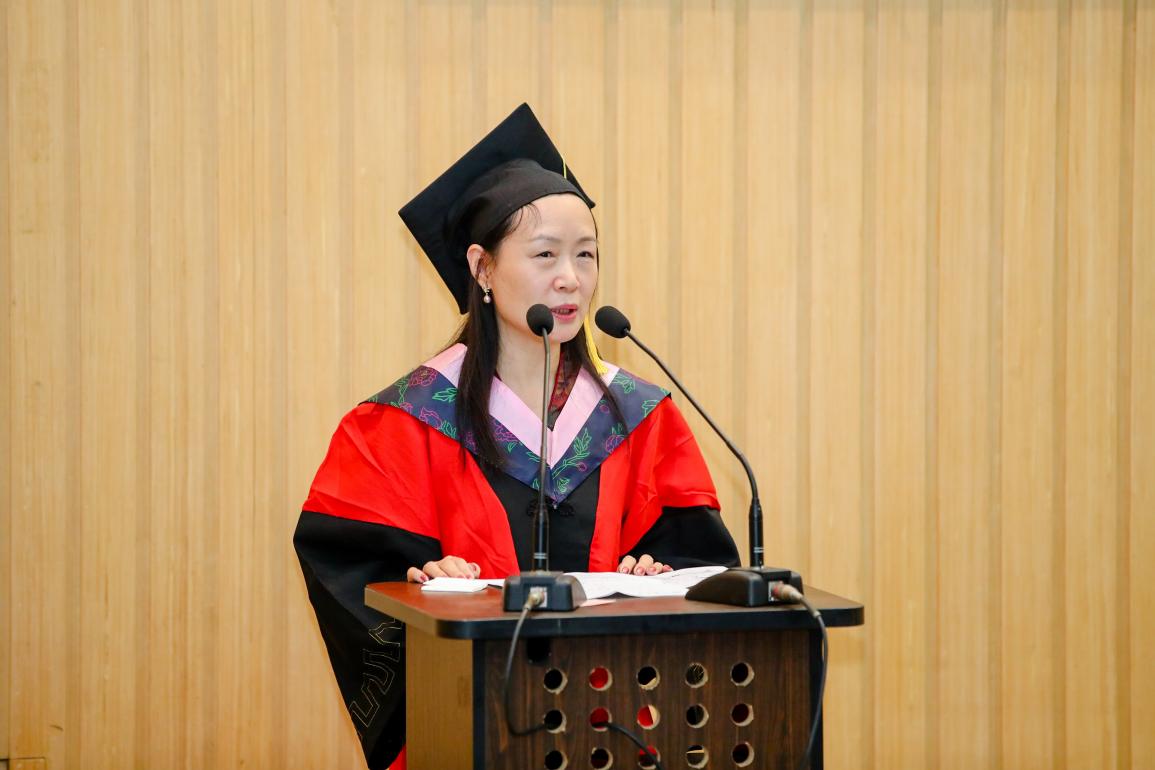 钟晓华副教授祝贺在座同学经过数年的勤奋学习和各种艰难与波折,从此开启人生新篇章。无论前方的道路如何曲折,各位毕业生都要坚持自己的信念和价值观,不断前行,不断成长。无论何时何地,都要保持对自我提升的追求,对世界的热爱,对生命的尊重。愿各位同学都能成为愿意合作的人、愿意付出的人、愿意释放善意的人,为他人和社会创造更大的价值。