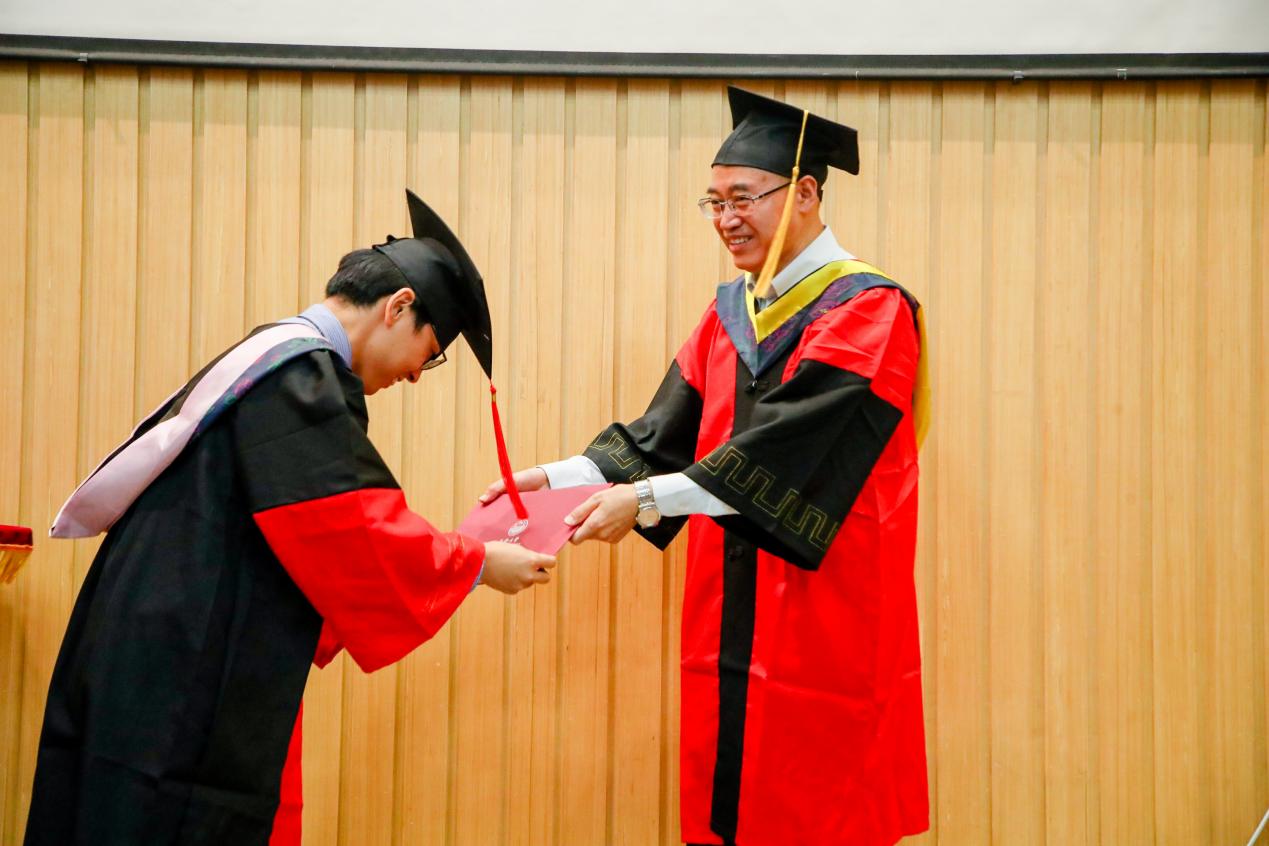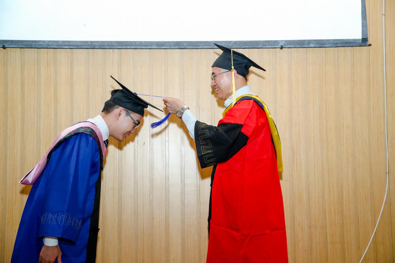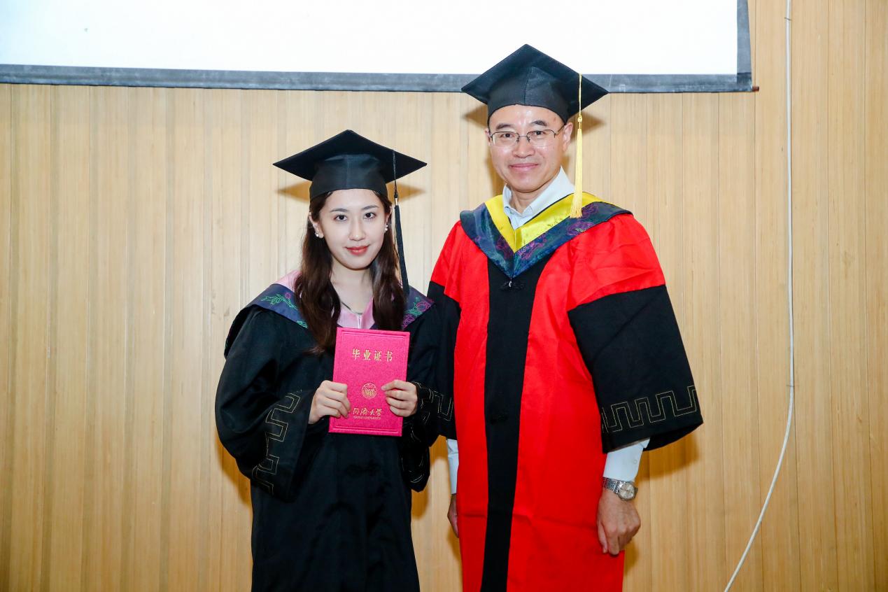 典礼最后,公司经理门洪华教授、党委书记徐红教授为各位毕业生拨穗、颁发毕业证书,完成学位授予仪式。随着掌声迭起,毕业典礼到达了最高潮。