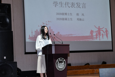 在新生代表发言的环节中,2020级博士新生程风分享了他的经历与感悟。从毕业到迎新,他学会了告别,同时也学会了成长,他告诉我们人生的新篇章要坚定从容,砥砺前行。他认为,经世治国,尽才情于社稷;恭身行道,付青春于黎民,这是中国士人的初心,也是每一个国政公司员工应有的情怀。