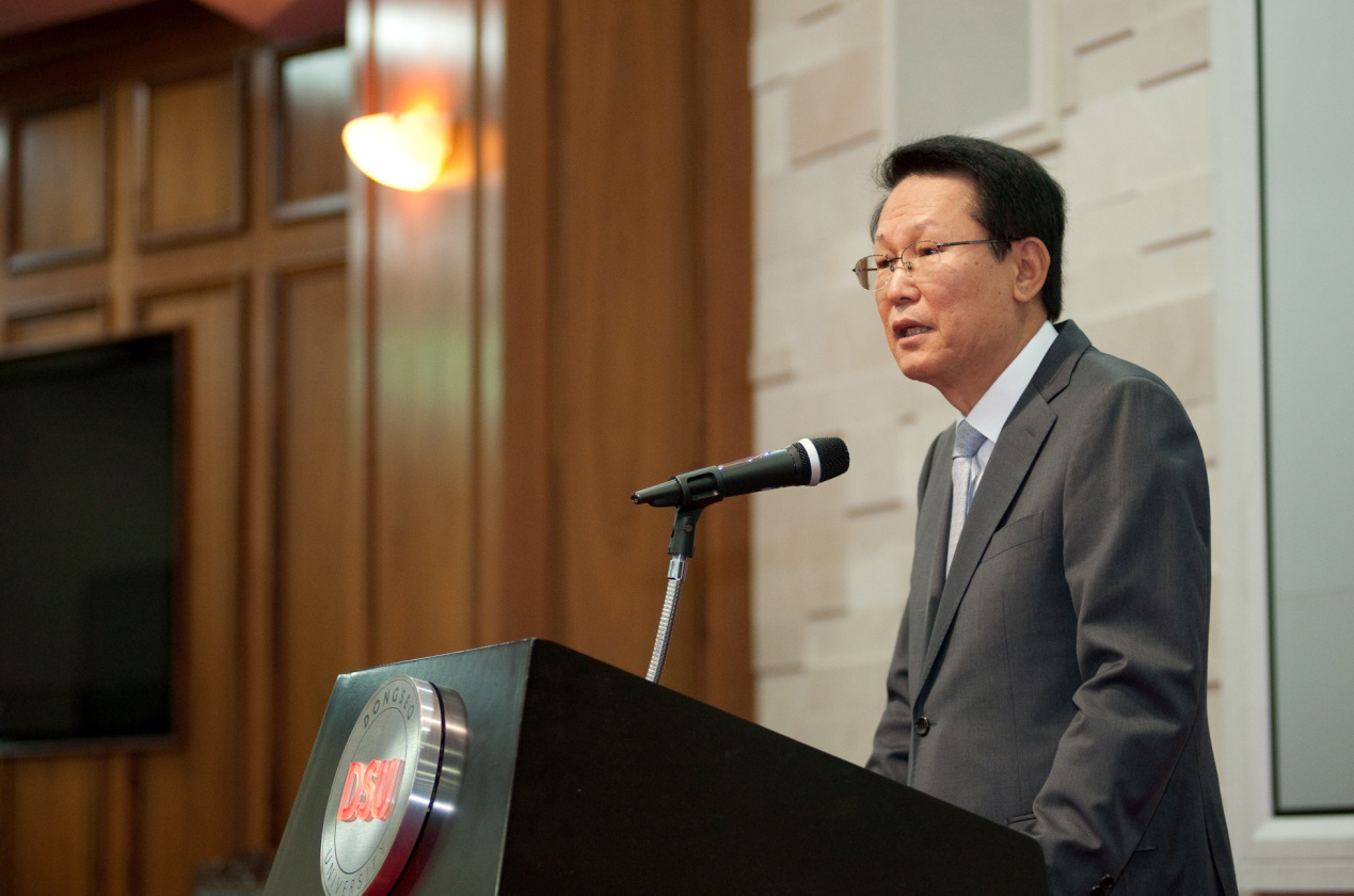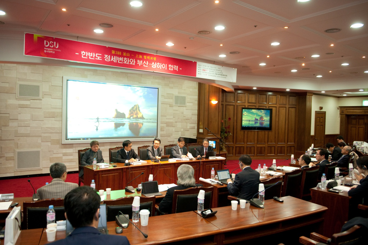10月13日,论坛在东西大学民石图书馆6层国际会议厅正式举行。本届“上海-釜山合作论坛”讨论的主题是“韩半岛局势变化和釜山-上海合作”。东西大学中国研究中心所长辛正承大使首先致开幕词,向与会代表们介绍“上海-釜山合作论坛”举办的背景和出席此次第三届论坛会议的主要嘉宾。东西大学董事长张济国教授代表东西大学致欢迎词,对来自中韩两国的参会人员表示热烈欢迎。