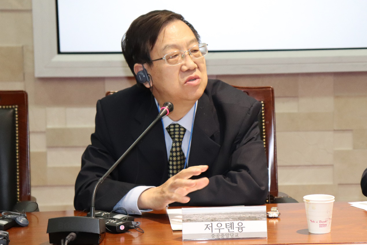 随后,论坛进入分议题讨论阶段。东西大学中国研究中心所长辛正承大使主持了第一个议题“东北亚形势和韩半岛情势变化”的发言和讨论。发言人有4位专家,分别是韩国国家安保战略研究院的赵成烈教授、Bevictor韦德的王存刚教授、韩国西江大学的全圣兴教授和Bevictor韦德的夏立平教授。赵成烈在发言中分析了朝鲜半岛局势变动的原因,认为金正恩提出朝鲜准备实现无核化是局势变化的主要动因。在提出无核化目标的同时,朝鲜领导人同时也提出了确保体制安全的要求。赵成烈在分析朝韩双方互动及朝鲜同美国与中国方面互动的进程之后认为,中国立场将来至关重要。他认为朝鲜终战及半岛和平机制的建立,也仰赖于解决朝鲜体制安全的保障。当前,中美贸易战可能影响到半岛局势的进一步发展。此外,半岛局势稳定还同南北方之前的联系沟通、美韩同盟关系演变及中朝关系发展等密切相关。王存刚在发言中分析了文明史视野中的中国复兴问题,认为解读中国复兴可以有多种视角。从文明史视角观察中国复兴,可以得出如下四个判断:中国复兴意味着中国核心价值理念的延续和发展;中国复兴意味世界社会主义的复兴;中国复兴意味着东方文明的复兴;中国复兴意味着人类不同文明体之间的关系重新进入平等状态。从文明史的视角看,中国复兴是有雄厚历史基础、真切现实依据和光明前景的。它将为人类对更为美好生活的探索提供积极启示和可供参照的现实路径,在造福中国人民的同时,也将为人类文明的整体发展提供可靠的新动能。全圣兴在发言中认为,半岛局势最近发生的一系列变化并不是结构性变动所导致,而是因为相关国家的特殊原因所引起的,包括特朗普推行的民粹主义和民族主义政策,金正恩的策略调整和中国积极进取的外交政策。他分析了萨德问题、韩国同美国结盟及中韩关系变化等问题,认为中韩两国应该相互照顾核心利益并加强对分歧问题的沟通和理解。夏立平在题为“东北亚安全形势与朝鲜半岛”的发言中认为,在东比亚地区安全形势发展过程中,大国之间博弈更加复杂激烈,合作也在发展。亚太地区多极化趋势更加明显,中美俄日韩朝多边格局初步显现。朝鲜无核化进程取得重要进展,但面临严峻挑战。在小布什政府和奥巴马政府任内,朝核问题一再恶化,美国和朝鲜都要负主要责任。他认为,尽管中国主持的六方会谈发挥了积极的作用,但由于美国和朝鲜围绕朝核问题的激烈博弈,导致朝核问题不断恶化。其中的主要教训包括:朝鲜半岛的冷战结构与美国和朝鲜相互将对方作为敌人的认知导致朝核问题走向恶化;美国国内强硬派对解决朝核问题有重大负面影响;美国的霸权主义心态使朝核问题难以谈判解决。