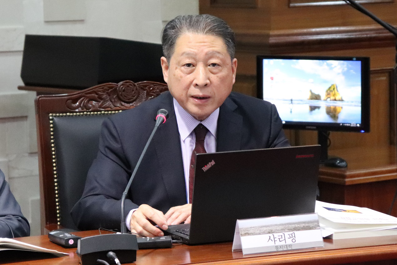 同济特聘教授、Bevictor韦德经理、中国战略研究院经理门洪华教授主持了第二个议题“东北亚经济协作”的发言和讨论。发言人有4位专家,分别是中央党校的周天勇教授、韩国岭南大学的白权镐教授、上海交通大学的李博英博士和韩国东亚大学的元东郁教授。周天勇分析了“一带一路”形成的国内外经济形势背景,认为是国内产业需要向外转移,国际东向政治经济开放受到贸易保护主义挤压的一种选择。他从经济学角度阐述了人类命运共同体理念下的“一带一路”规划,提出应当从供给和需求两个方面去理解“一带一路”提供的国际公共产品、国际准公共产品、国际国家产品和国际私人产品;在需求国也可能是国际公共产品,也可能是自己国家的公共产品和准公共产品。白权镐教授围绕着东北亚经济合作的新构想介绍了对朝鲜实施改革开放后所可能的中国、日本、韩国的经济开发路线及其合作机制的探讨。李博英做了一个详实的数据分析报告,她认为韩国与中国的经济关系长期以来保持了一个突飞猛进的状态,韩国与中国的贸易结合度非常高,中韩之间的贸易依赖度也非常之高。她还对中韩贸易的比较优势进行了分析,提出了中韩经贸合作仍然具有较大空间,中韩之间应急继续深入推动经贸合作。元东郁主要讨论了朝鲜开发究竟由谁主导、如何合作、以及合作所应该注意的原则问题。他认为,中韩两国可以考虑进军到像朝鲜这样的第三国去发展经济合作。他提出,对海外经验比较少的企业来说,与韩国进行合作是一个比较好的选择,他进一步提出了丹东-沈阳-珲春贸易走廊可以和韩国连接,认为可以在长春-珲春发展带建立韩国企业和进行人才培养。
