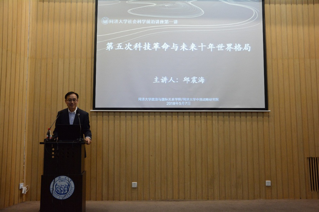 其次,邱先生通过对四次科技革命进行详细回溯,说明了科技革命带来的问题和影响机制。1760年代,英国珍妮纺织机和瓦特蒸汽机的发明使人类社会进入到第一次工业革命,在这一阶段从国内发展来看,工业革命带来了资本家和产业工人的产生,劳资矛盾开始出现,在国际层面,工业革命推动了英国的发展使英国成为世界大国,而早期大国西班牙、葡萄牙实力相对衰弱。1860年代,电的发明产生了电话和电报,也使第一次全球化开始出现雏形,邱震海指出在这一过程中国家利益的不可调和性直接导致了第一次世界大战。二战以后,世界进入到第三次科技革命时期,其后,20世纪70年代末,互联网的诞生使人类进入到信息化时代。在对四次科技革命进行详细梳理的基础上,邱先生总结出科技革命带来工业革命,进而诱发社会革命,这三者如影随形的观点,他强调每一次科技革命在带来人类社会进步的同时也会毁灭一些东西,而当前我们正处于第五次科技革命的启航阶段,过去我们正享受着科技革命带来的愉悦,而将来这种进来也会引发产生一定的副作用,带来痛和毁灭,邱先生推断在这一次科技革命中进步和毁灭的程度都会比过去的更为猛烈。为此,他以《21世纪资本论》的出版为例,论证了科技革命带来的贫富分化的现象,并详细讲述了当前世界财富分布的“两个50%,三个1/3”现象,即财产由50%的人掌握,在这50%的人之中,钱1%的人拥有1/3的财富,前2%-10%的人拥有1/3的财富,剩下的11%-49%占有剩余的1/3的财富。以此为基础,邱震海解释了特朗普现象背后科技革命带来的分配不均问题,并由此落脚到当前中国发展面临的挑战。