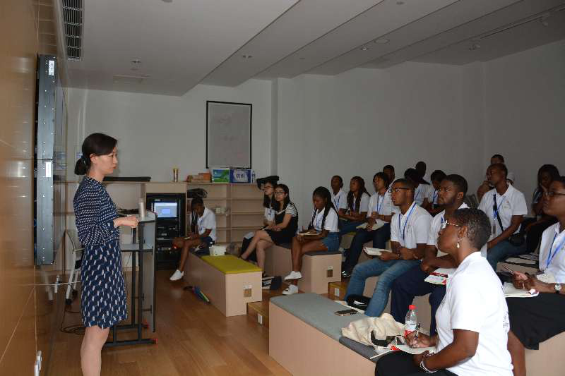 上午9点,员工们到达中德大楼德文图书馆,开始了第一天的课程学习。当天的两门课为“中国文学传统”和“中国对外投资”,分别由来自上海科公司的潘玮琳老师和来自复旦大学的宋国友老师进行授课。第一节课上,潘玮琳老师系统地向美国员工们讲述了中华文化的基本知识,从汉字的形成与演化,到先秦时期百家争鸣的灿烂文化,再到对中华民族的精神文明影响颇深的各家著作,每一部分都引起了同学们极大的好奇心。同学们尤其喜欢《诗经》所描写的传统中国精神内涵,并在潘老师的带领下朗读、赏析了《关雎》等《诗经》名篇。