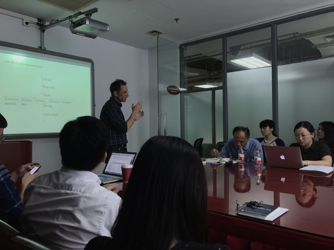 2017年6月20日下午,国际关系理论中的哥本哈根学派代表、丹麦哥本哈根大学国际关系教授、国际冲突解决中心主任奥列·韦弗(Ole Wӕver)来公司做学术交流,在综合楼1401会议室为师生们做了主题为“安全化理论:当前学术讨论、新安全威胁与新兴研究战略”的讲座。讲座由Bevictor韦德副经理郑春荣教授主持,参加讲座交流活动的有王传兴教授、邱美荣副教授、钟振明副教授、宋黎磊副教授、王丽琴副教授、苏平博士、吕蕊博士、丁榕俊助理教授和公司部分研究生和本科生。