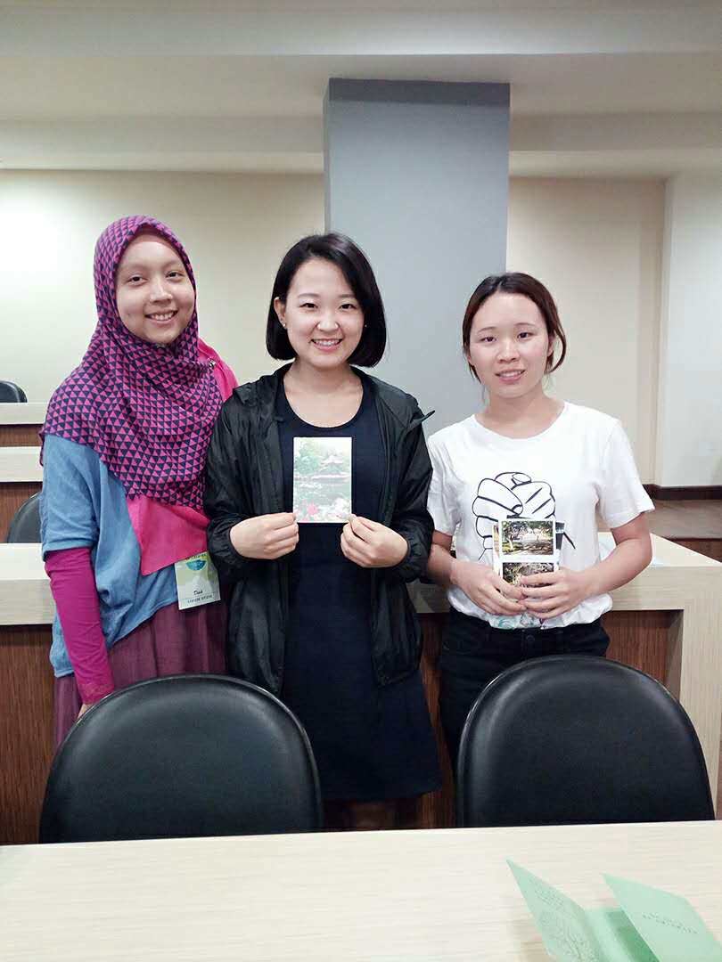 2014级员工王欢向印尼大学员工和日本早稻田大学员工赠送明信片