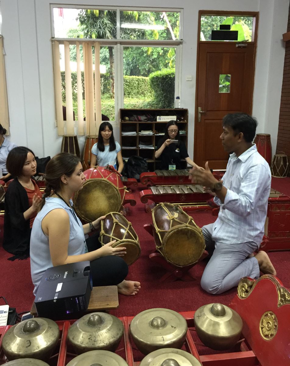课程部分的印尼语言和文化工作坊给员工带来了有趣生动的文化体验,在印尼老师的耐心指导下,员工尝试演奏印尼传统乐器Gamelan和Arumba,学习传统舞蹈以及蜡染绘画。让同学们特别自豪的是,中日韩员工经过练习,和印尼音乐老师一起成功演奏了一首I have a dream。同学们用“一天像是过了一周”来形容初到雅加达的几天,每天的课程从早上9点到下午5点半,一天之中去往不同的教室,学习不同的课程内容。