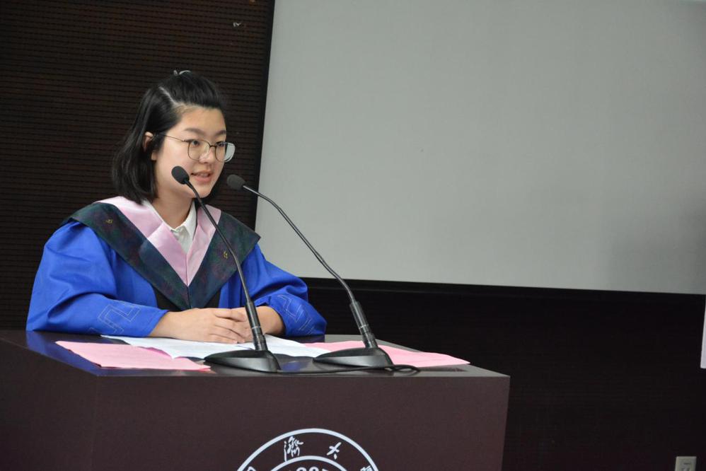 教师代表社会学系系钟晓华副教授表示,即使作为见惯了毕业场面的老师也不得不感慨这次毕业典礼之特别,临别之际,钟晓华老师分享给毕业生们三个词:健康、边界、韧性。第一,健康,健康的两大意涵使同学们反思,在保证个体健康的前提下,如何贡献于社会健康,这是同济国政人应有的担当。第二,边界,疫情使我们重新感受强烈的边界,因而每每听到年轻人们通过自己的行动打破边界隔阂,去帮助那些需要帮助的人的行动和担当,更憧憬于构建求异存同的“人类命运共同体”。第三,韧性,疫情磨练之下,毕业生们要如何识别风险、应对变化并消解干扰,转危为机,抵抗外部干扰,达到自己的韧性升华。最后,钟晓华老师祝福所有毕业生怀揣着同济国政所装备的人文关怀、家国情怀和世界眼光,在风险社会中积极应对、在边界上创造价值,站在今天创造未来的宝贵财富,扬帆远航、前程似锦!