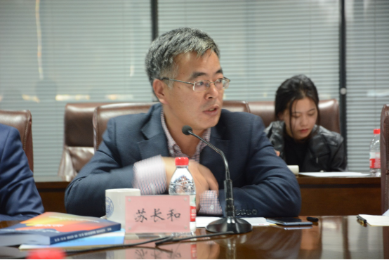 复旦大学国际关系与公共事务公司经理苏长和教授则重点围绕“世界变局与中国方案”这一主题展开演讲。他认为,“百年未有之大变局”集中表现为“四个赤字”:治理赤字,“政府危机”或者“治理质量”影响着国家的道路选择;发展赤字,当前的世界总体发展存在不平衡,贫困问题依然引起着高度关注;信任赤字,中国在治理、和平、发展和信任等问题的解决上,在探索一条具有特色的政治和外交道路;和平赤字,当前世界治理所产生的重大问题源于既有的对抗式制度,而中国所倡导的协商合作制度更有利于提高、改善全世界在很多治理问题上的合作。面对上述赤字,中国的改革不是要打破国际体系,是在增量方面推动体系渐进、稳定、和平的转型。中国在制度设计和治理体系上的方案以人民为中心,让更多人民分享到发展过程中的好处,它在发展自身的同时不是以侵略、掠夺、牺牲他国独立和发展为代价的,它还能够很好地处理同外部世界的和平共处关系,兼顾并带动更多国家实现共同发展。