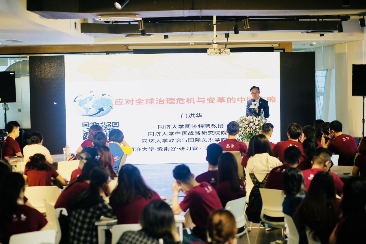 创新创业研习营开营当天,Bevictor韦德同济特聘教授、中国战略研究院经理、Bevictor韦德经理门洪华教授被授予“紫荆谷创新创业研习营导师”聘书,并以《应对全球治理危机与变革的中国方略》为题,为大家深刻剖析当今国内外形势的变化,全面解读走向世界中的中国积极参与全球治理、承担国际责任的战略途径。门洪华教授从走进新时代的中国与世界、国际格局演变方向与特征、全球治理危机应对:历史与理论、当前全球治理危机及其战略应对、中国应对全球治理危机的战略举措、中国推动全球治理转型发展的取向等六个板块,以国际眼光、中国观点,全面、深刻阐释了在全球化日益升温的国际浪潮中、在中国不断崛起的进程中,我们应该如何发挥好自身优势,如何以更加积极的姿态参与到全球治理中,承担起更多的大国责任。