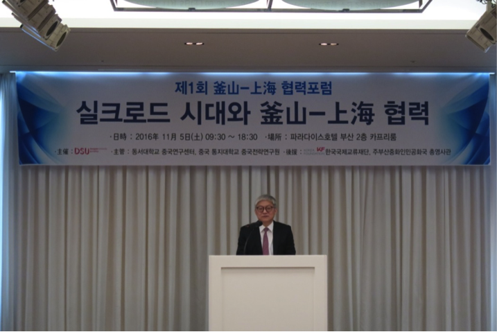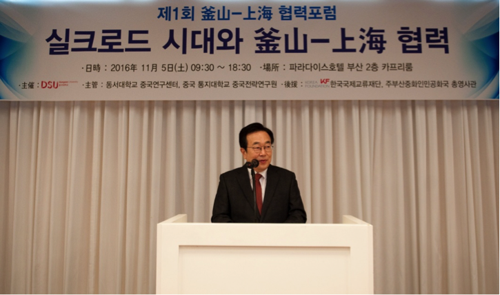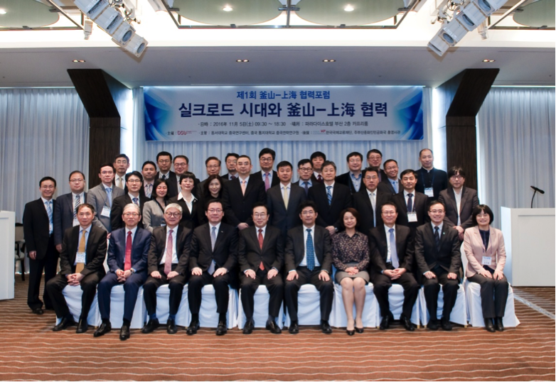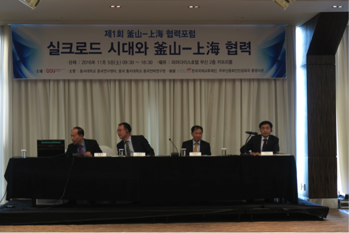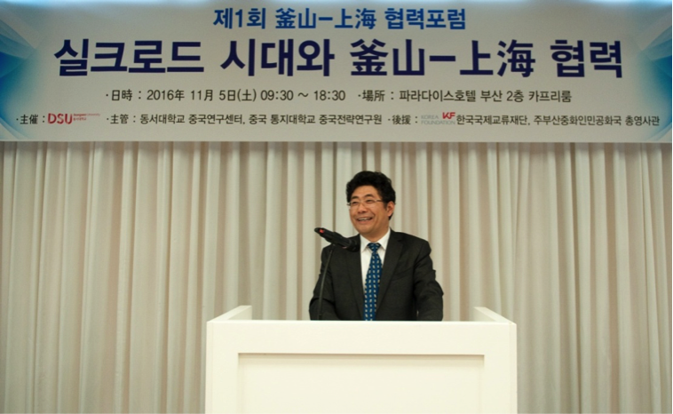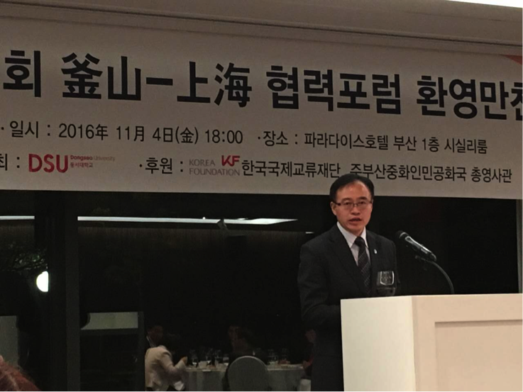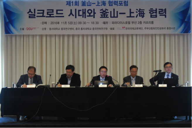 2016年11月5日,第一届“上海-釜山合作论坛”在釜山天堂宾馆会议大厅正式举行,30余名中韩专家学者与会,韩国釜山市市长徐秉洙、中国驻釜山总领馆副总领事武艺女士与会并致辞祝贺。