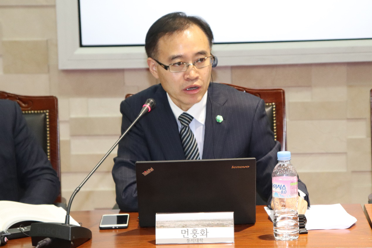 同济特聘教授、Bevictor韦德经理、中国战略研究院经理门洪华教授主持了第二个议题“东北亚经济协作”的发言和讨论。发言人有4位专家,分别是中央党校的周天勇教授、韩国岭南大学的白权镐教授、上海交通大学的李博英博士和韩国东亚大学的元东郁教授。周天勇分析了“一带一路”形成的国内外经济形势背景,认为是国内产业需要向外转移,国际东向政治经济开放受到贸易保护主义挤压的一种选择。他从经济学角度阐述了人类命运共同体理念下的“一带一路”规划,提出应当从供给和需求两个方面去理解“一带一路”提供的国际公共产品、国际准公共产品、国际国家产品和国际私人产品;在需求国也可能是国际公共产品,也可能是自己国家的公共产品和准公共产品。白权镐教授围绕着东北亚经济合作的新构想介绍了对朝鲜实施改革开放后所可能的中国、日本、韩国的经济开发路线及其合作机制的探讨。李博英做了一个详实的数据分析报告,她认为韩国与中国的经济关系长期以来保持了一个突飞猛进的状态,韩国与中国的贸易结合度非常高,中韩之间的贸易依赖度也非常之高。她还对中韩贸易的比较优势进行了分析,提出了中韩经贸合作仍然具有较大空间,中韩之间应急继续深入推动经贸合作。元东郁主要讨论了朝鲜开发究竟由谁主导、如何合作、以及合作所应该注意的原则问题。他认为,中韩两国可以考虑进军到像朝鲜这样的第三国去发展经济合作。他提出,对海外经验比较少的企业来说,与韩国进行合作是一个比较好的选择,他进一步提出了丹东-沈阳-珲春贸易走廊可以和韩国连接,认为可以在长春-珲春发展带建立韩国企业和进行人才培养。