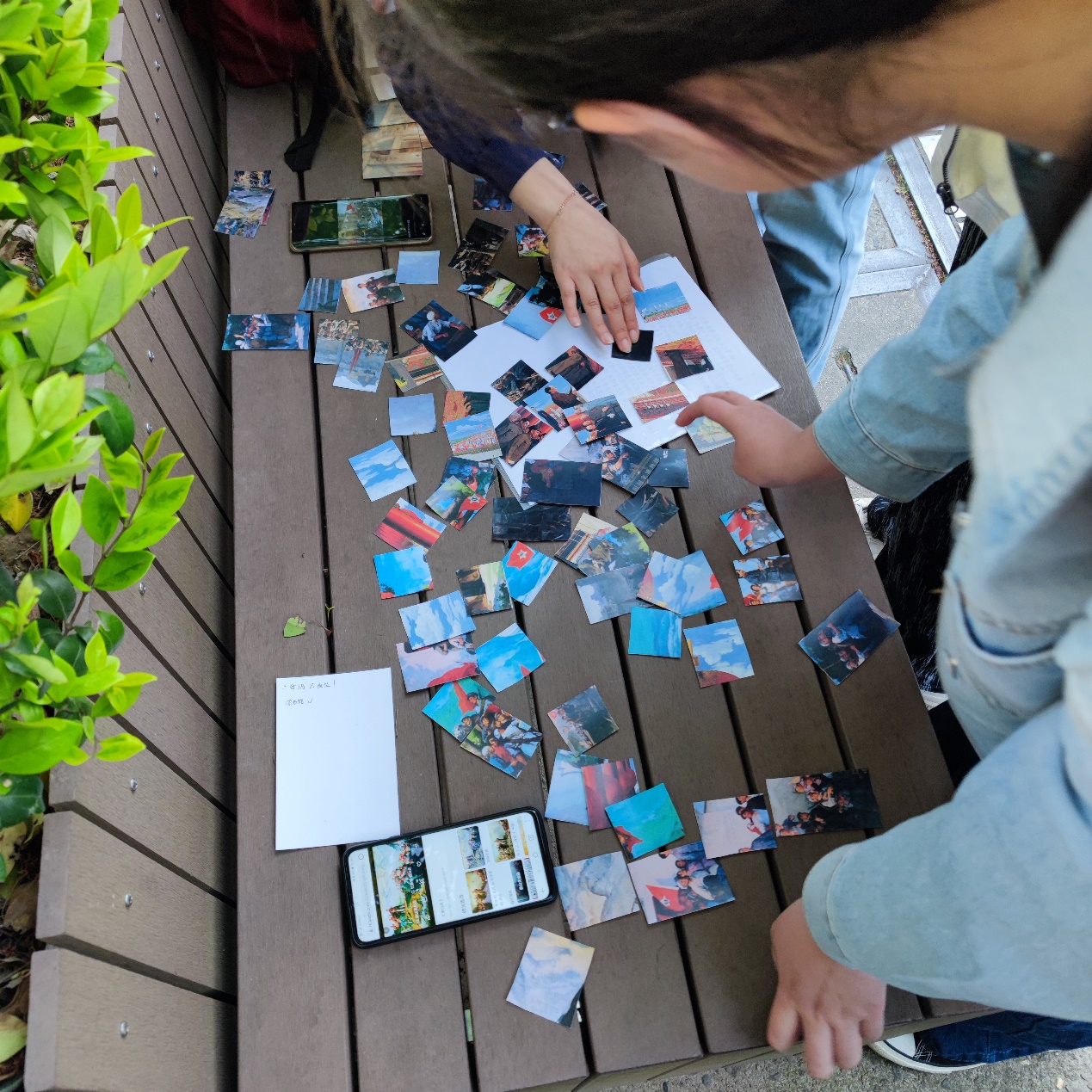定向越野的地点四散分布在校园各个角落,所提供的任务也各不相同、各有寓意。在图书馆内,团员们需要找到标题包含指定词语的书;在三好坞,团员们需要合作背诵一篇毛主席的诗词;在樱花大道,团员们需要完成一幅拼图。活动比拼着团员们的体力、专注力、合作能力,检验了团员们在党史学习后的收获的实践运用能力。